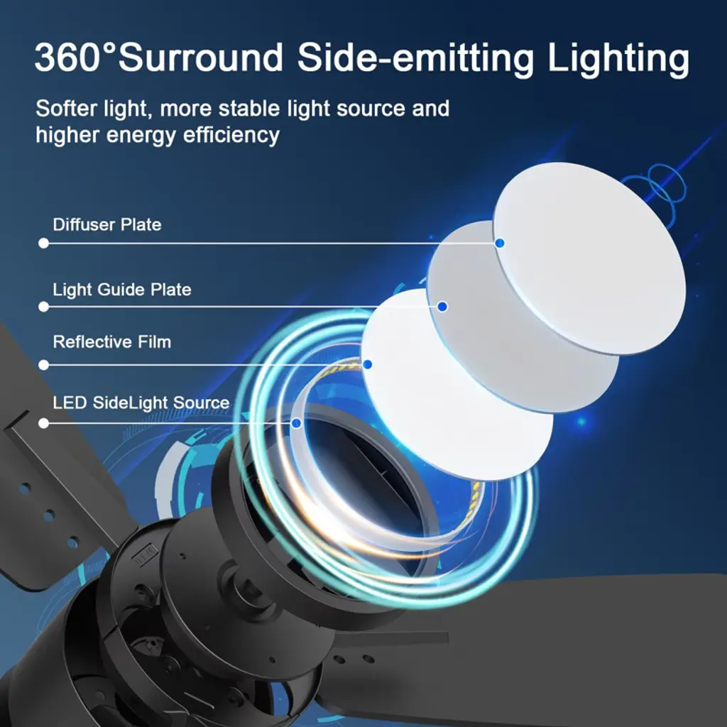Upgrade your living space with this 42 - inch ceiling fan with lights. It features a DC motor for high airflow and low noise, saving you on electricity. The dual - function reversible design keeps you comfortable in all seasons. Use the multifunctional remote to control the 15W LED light with three color temperatures and memory function. Installation is a breeze with the included hanging hook. The stylish dual - sided blades offer a customizable look, and the modern, ultra - thin design fits any room. Measuring 42"D x 42"W x 10"H, it's ideal for bedrooms, living rooms, kitchens, dining rooms, and offices, bringing both style and functionality to your home.