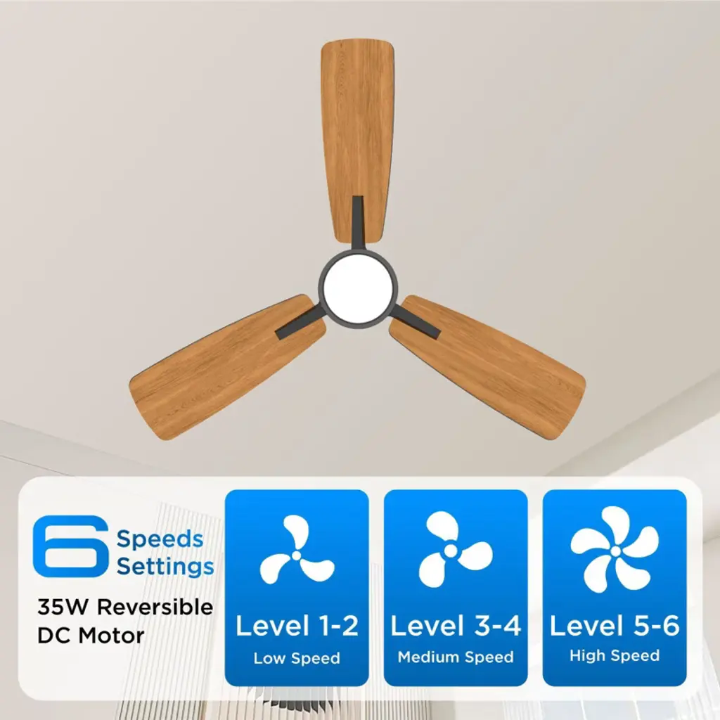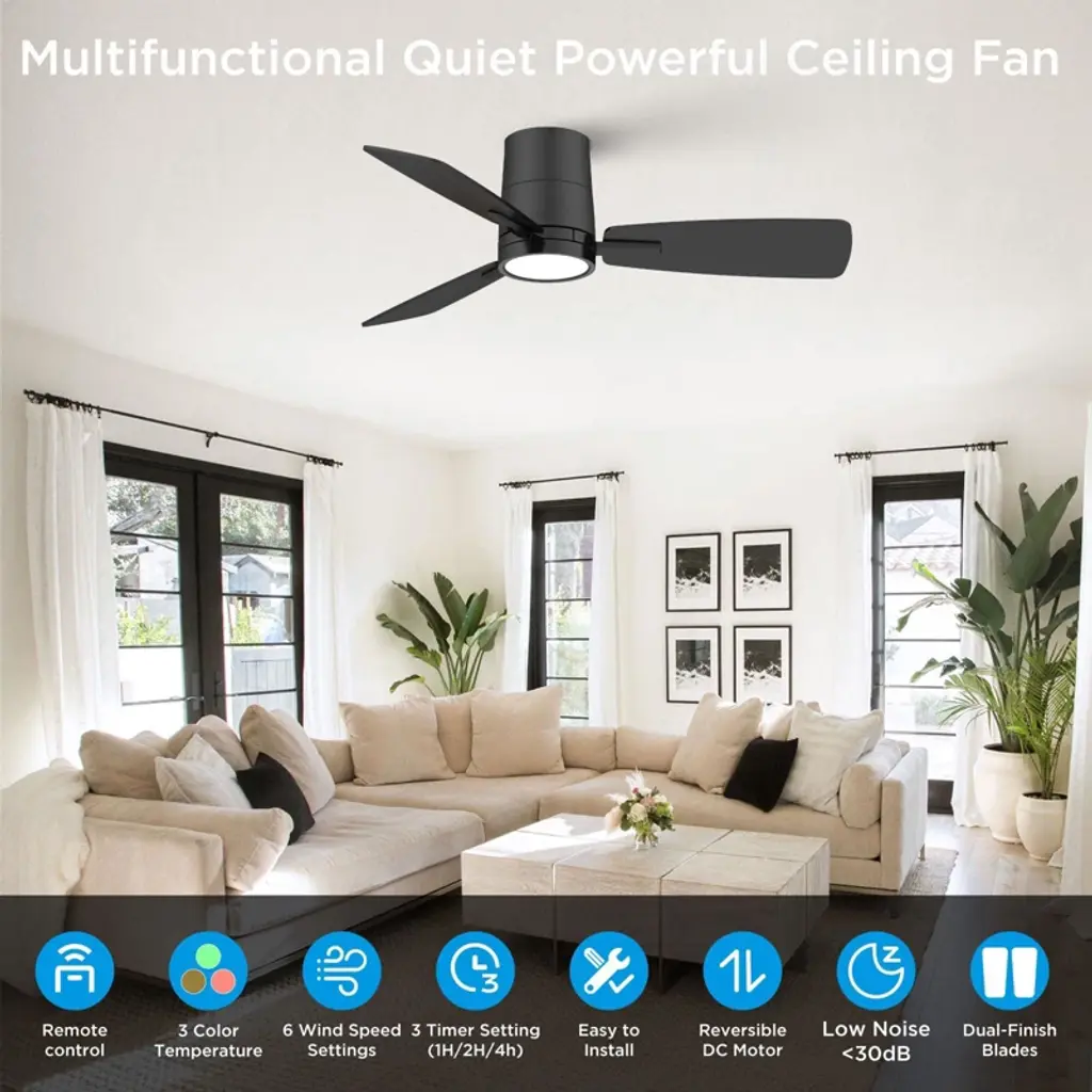 Aoibox 42 In. Low Profile Ceiling Fan With Led Light, Quiet Dc Motor, 6 Speeds, 3 Color Temperatures, Remote Control