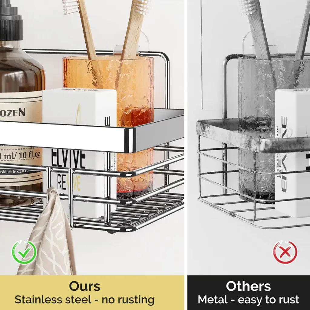 Looking for a practical and stylish solution to organize your bathroom or kitchen? Our shower caddy set is the answer! Made of SUS304 stainless steel, it's rustproof and waterproof, ensuring long - term use. The strong nano - material adhesive allows for easy installation without drilling or damaging the wall. With 7 hooks and a 3 - pack set, it offers plenty of space to hang and store your daily essentials like razors, towels, shower gel, and soap. The detachable design gives you the flexibility to move it around. It's suitable for various spaces such as bathrooms, toilets, kitchens, and powder rooms, bringing convenience to your daily life.