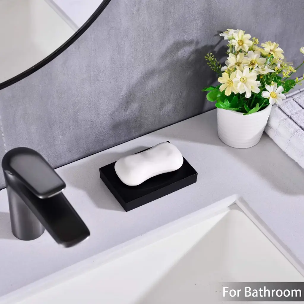 Elevate your bathroom or kitchen decor with this stylish black resin soap dish. Crafted from 100% resin, it's non - toxic, stainless, and corrosion - resistant, ensuring long - lasting use. The exquisite design features grooves that prevent items like soap and cotton pads from slipping. It's a versatile accessory, perfect for placing a variety of small items. Whether in the bathroom during your daily routine or in the kitchen for quick hand - washing, this soap dish adds a modern touch to your living space. Enjoy the convenience and style it brings to your life.