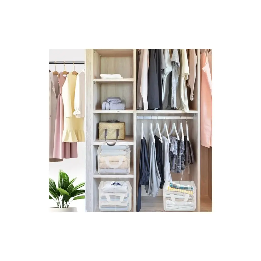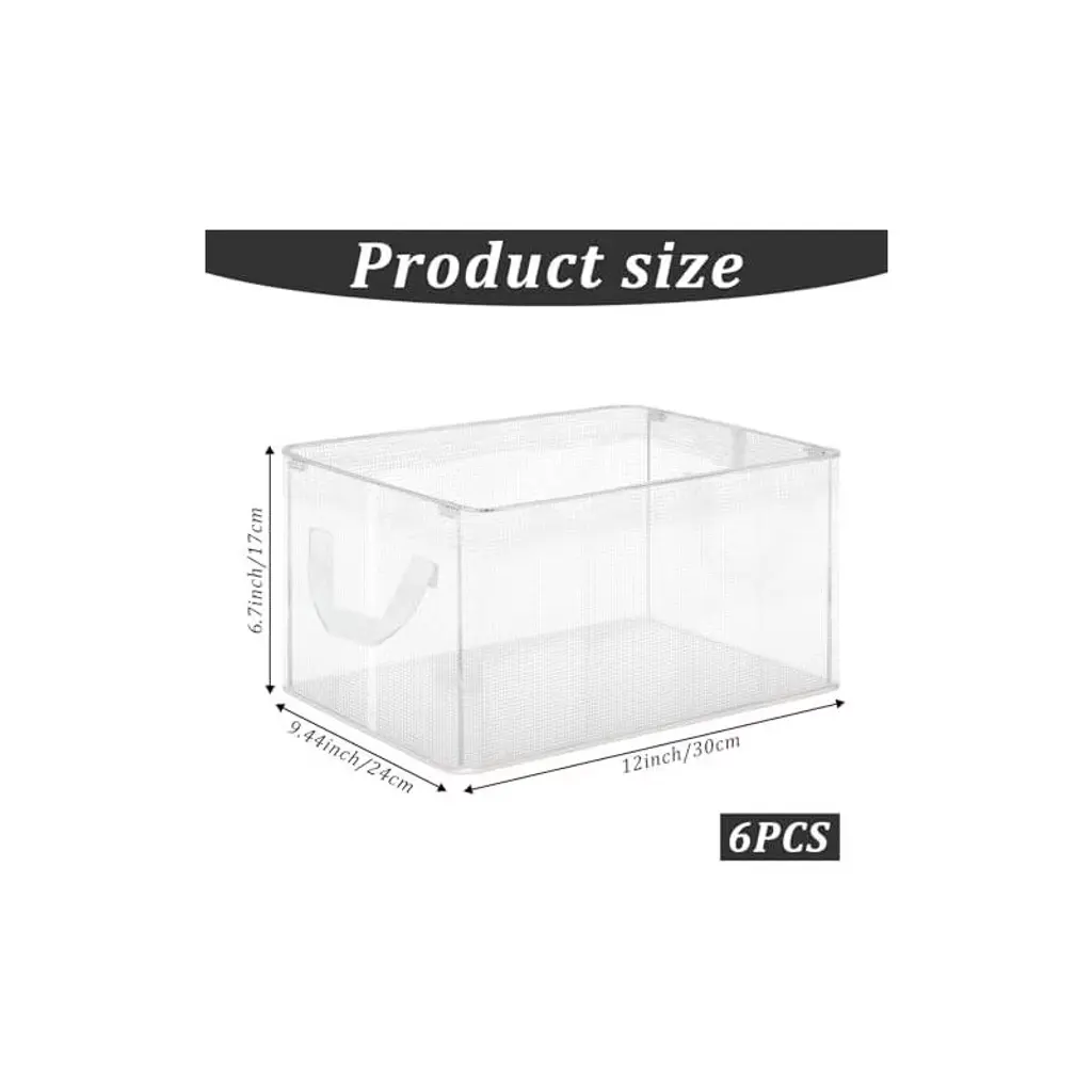 Aoibox Clear Collapsible Storage Baskets With Handles For Shelves Closet Organizers Decorative Plastic Bins 6 Pack
