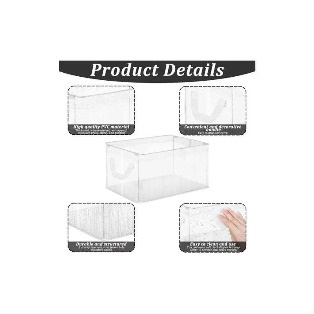 Maximize your space and keep every room tidy with this set of six collapsible storage baskets, designed with sturdy metal frames and clear durable plastic for effortless organizing. Easily find what you need at a glance thanks to the transparent design, while convenient handles make carrying and moving a breeze. Ideal for shelves, closets, bedrooms, and offices, these versatile bins are perfect for storing clothes, toys, books, and more, making home organization simple and stylish.