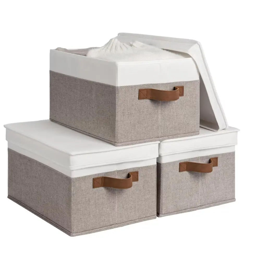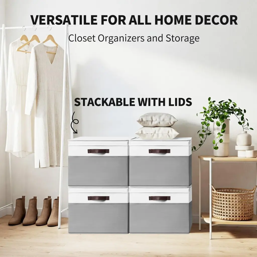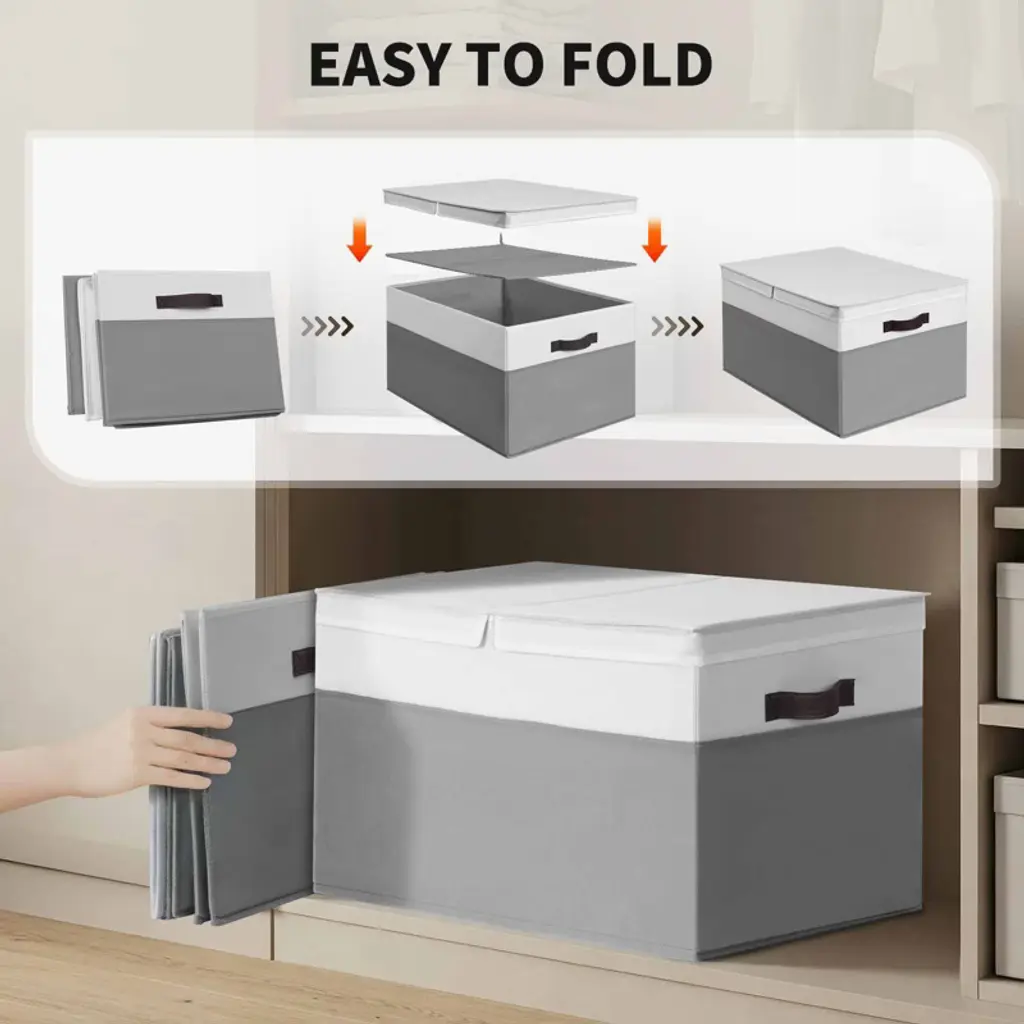 Discover a new level of home organization with these extra large storage baskets, designed to hold twice as much as ordinary bins without losing their sturdy shape. With a spacious 70L capacity, dustproof lids, and stylish two-toned design, they not only keep your space neat but also add a decorative touch to any room. Versatile, stackable, and easy to carry, these bins are perfect for tidying up your living room, nursery, or closet while complementing any decor.