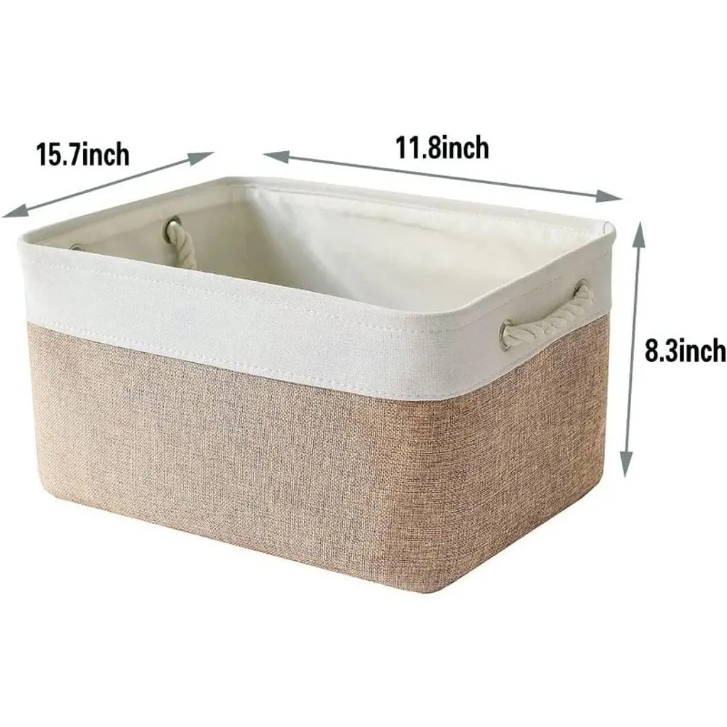 Transform your home organization with this set of four large, sturdy fabric storage baskets, crafted from premium imitation linen with thickened EVA for added structure and style. These foldable rectangular bins offer extra-large capacity¡ªideal for nurseries, closets, toys, clothes, books, bathroom, and more¡ªwhile the decorative design elevates any space. Featuring comfortable cotton and linen handles and easy-to-clean interiors, these versatile organizers are perfect for keeping every room tidy and chic.