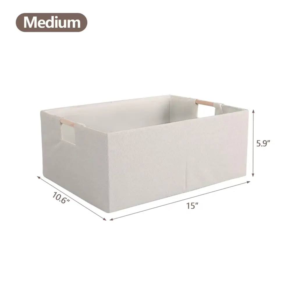 Aoibox Fabric Storage Bin Foldable Cotton Linen Basket With Wooden Handles Medium Beige Rectangular Cube Organizer