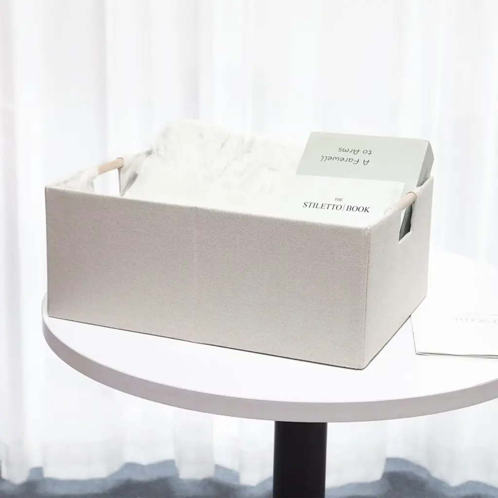 Keep your home organized and stylish with this collapsible fabric storage bin, featuring sturdy wooden handles for easy carrying and premium durable materials that ensure long-lasting use. The simple beige design blends effortlessly into any d¨¦cor, making it perfect for closets, shelves, and small spaces in every room. Available in three sizes, it¡¯s ideal for storing clothes, towels, magazines, and more¡ªhelping you maintain a neat and tidy living space with ease.