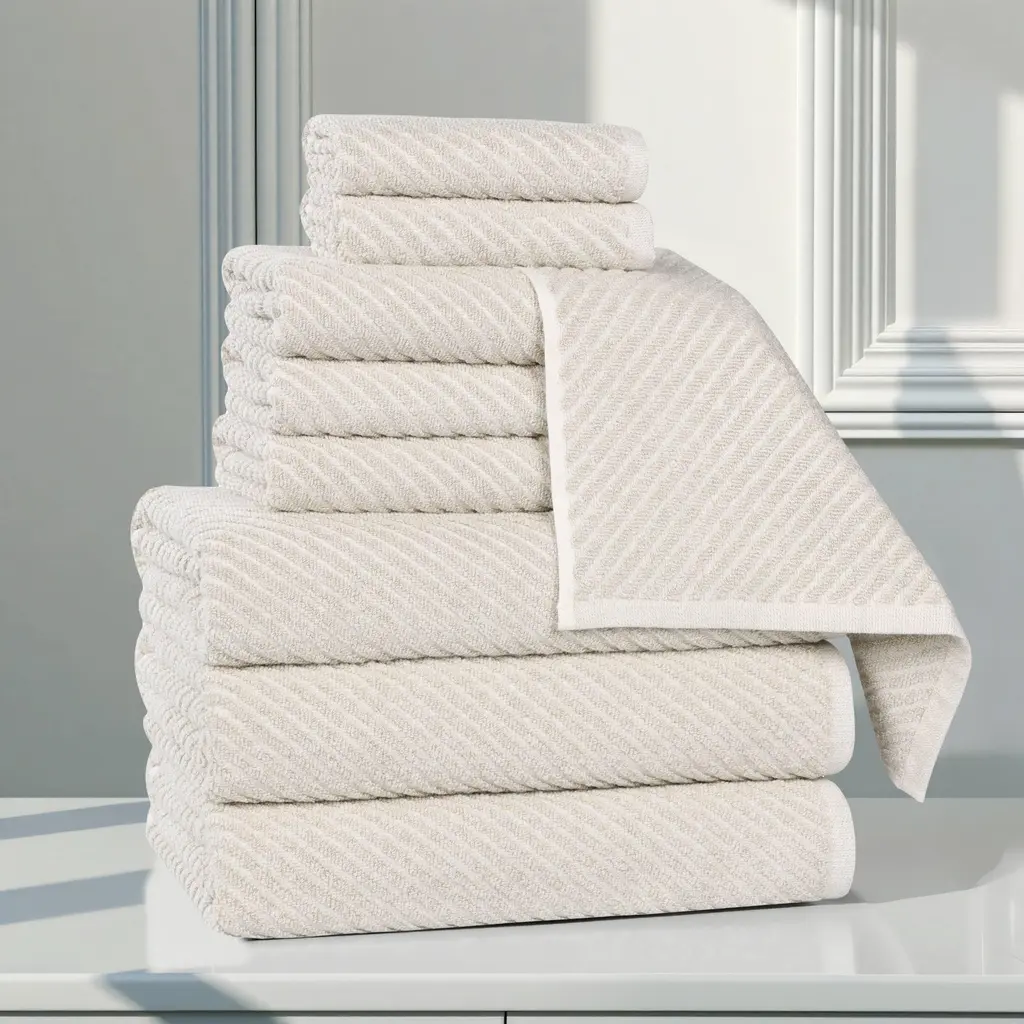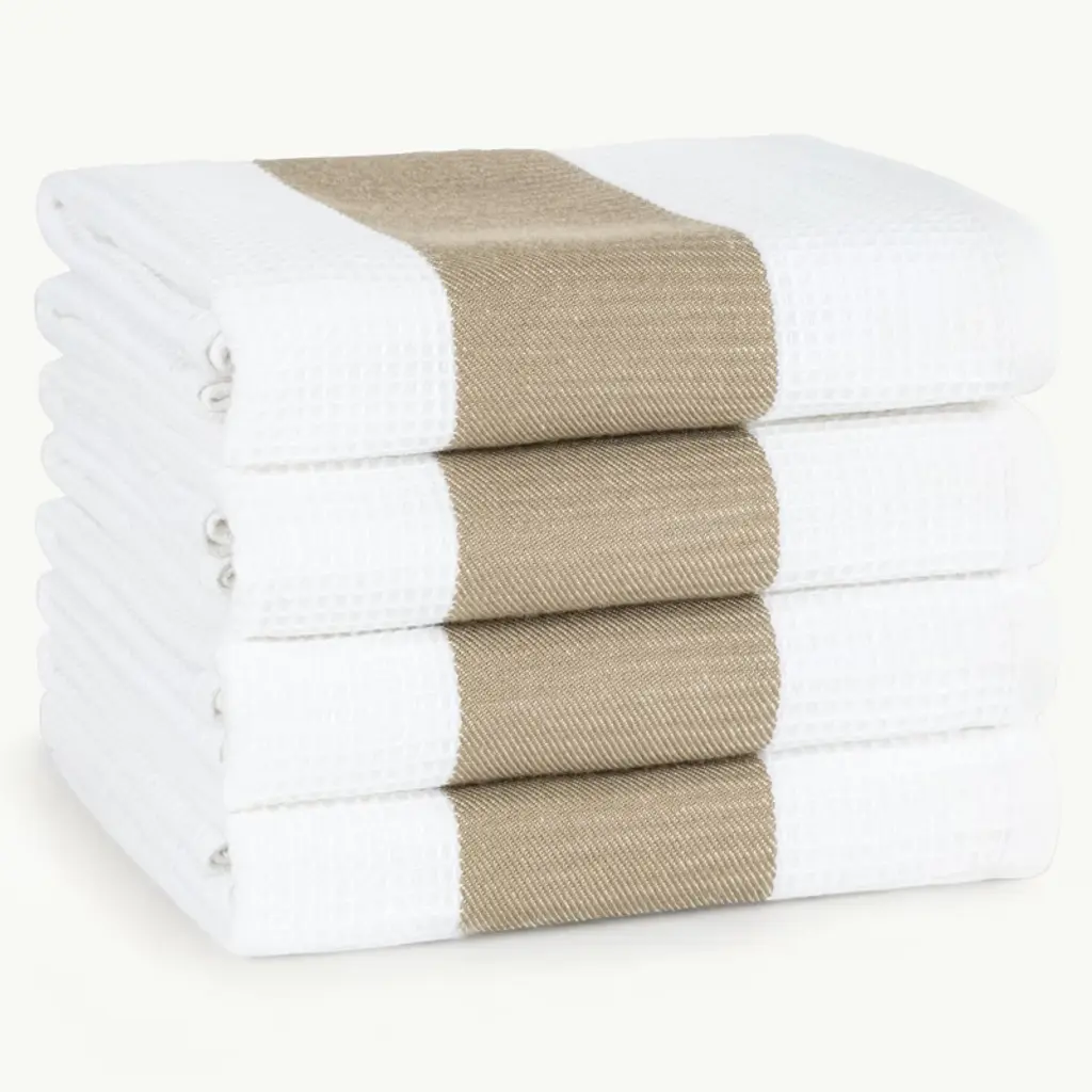 Aoibox Foldable Fabric Storage Baskets With Handles Medium Size Organizer For Shelves Beige Stripes 3 Pack Durable