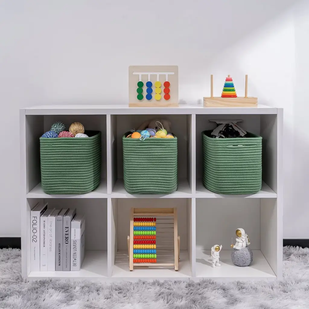 Aoibox Green Shelf Cube Storage Organizer Bins Skin-friendly Cotton Rope Basket Rectangular Set For Shelves 3 Pack