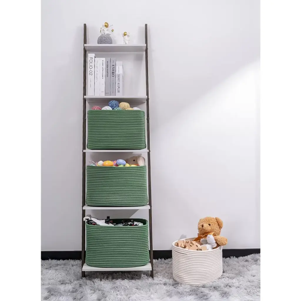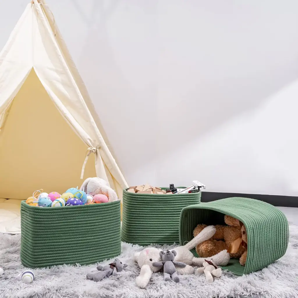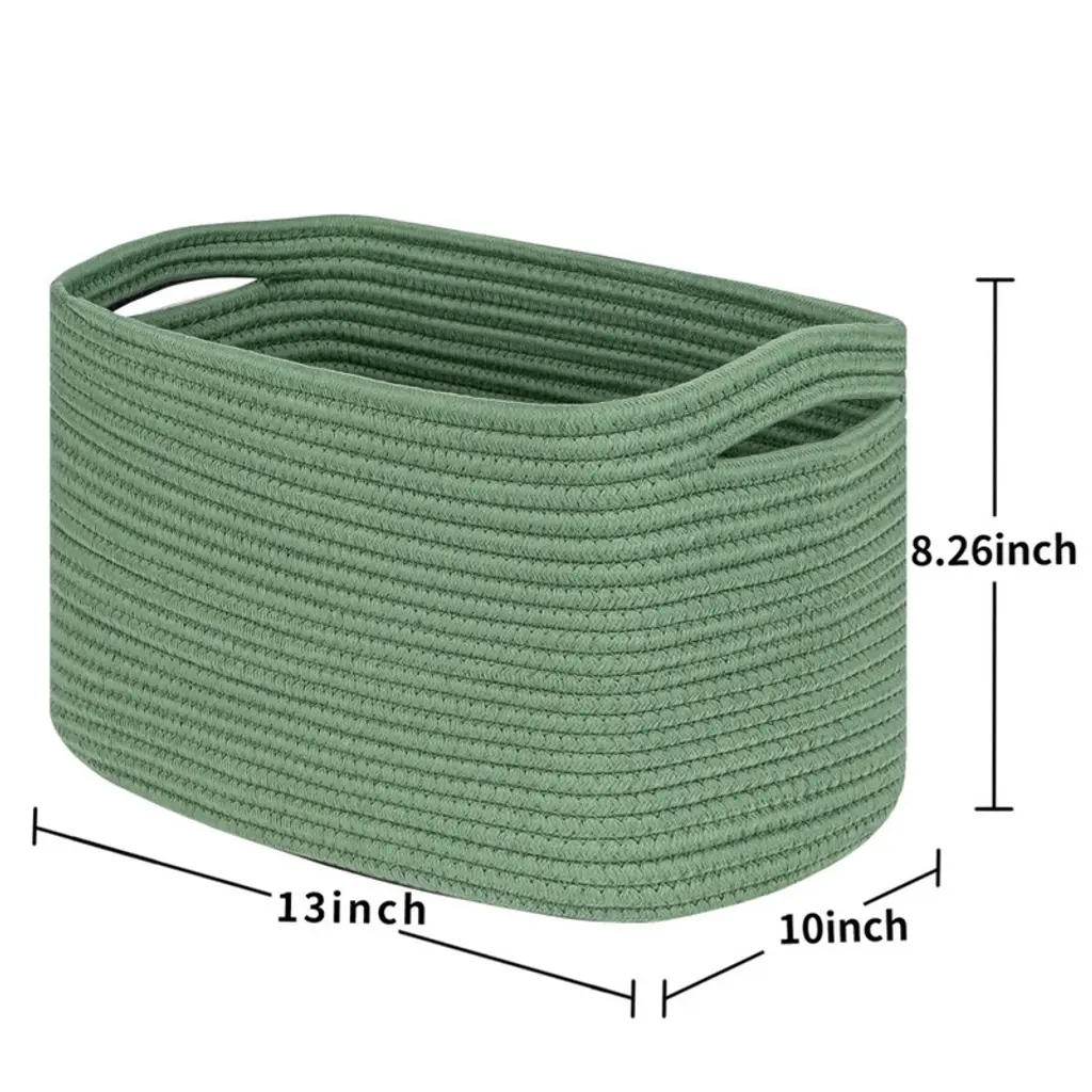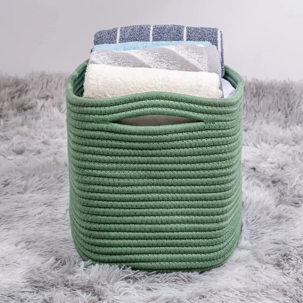 Transform your space with these elegant green woven storage baskets, crafted from skin-friendly cotton rope and designed to last. Perfect for decluttering any room, their versatile rectangular shape fits effortlessly on shelves, in closets, or on display for a stylish touch. Enjoy a neater, more organized home¡ªideal for storing toys, blankets, bathroom essentials, and more, while complementing any d¨¦cor.