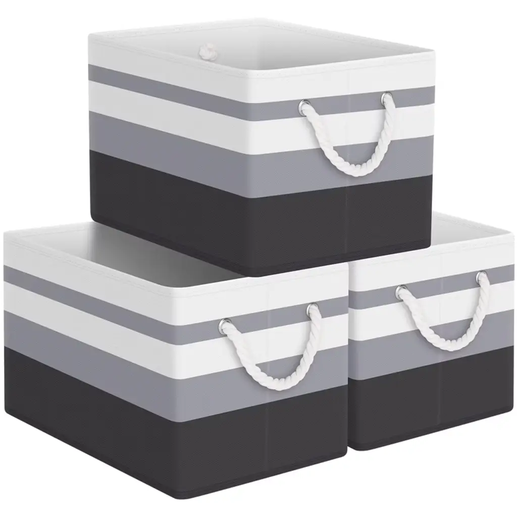 Aoibox Large Capacity Fabric Storage Bins For Closets Shelves With Leather Handles Organizer Boxes Grey 3 Pack