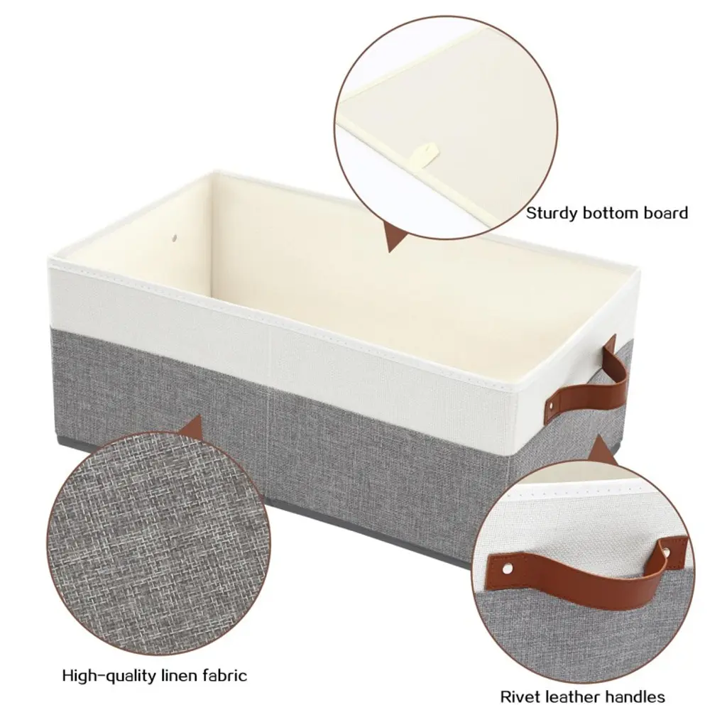 Organize your home effortlessly with these large capacity storage bins featuring premium linen fabric and reinforced leather handles for lasting durability and easy transport. Perfect for closets, shelves, or under-bed storage, they keep clothes, toys, books, and more tidy and accessible. Their foldable, stackable design ensures convenient use anywhere, making your space neat and clutter-free in style.