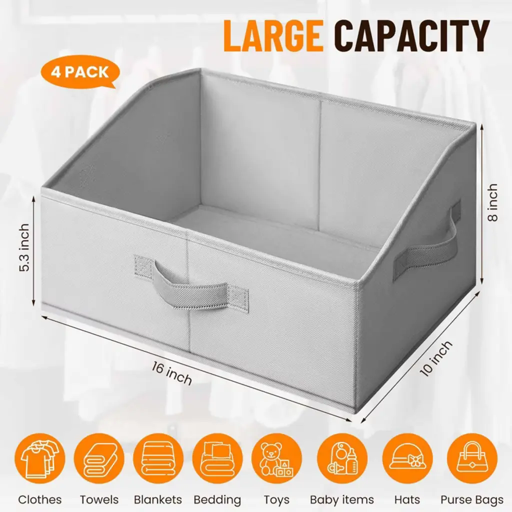 Aoibox Large Closet Shelf Organizer Bins With Handles Trapezoid Fabric Storage Baskets For Clothes Grey 4 Pack