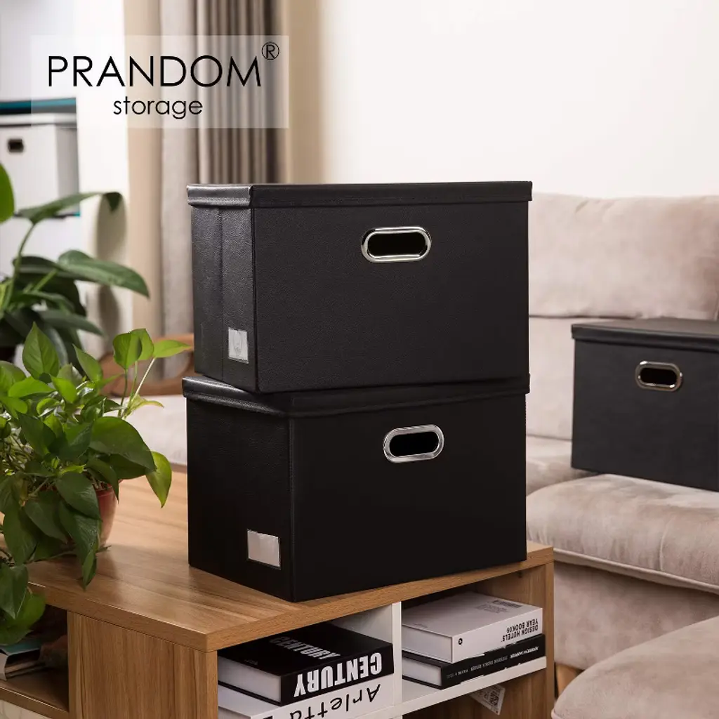 Aoibox Large Collapsible Storage Bin With Lid Foldable Leather Organizer Box Cube Black For Home Office Closet