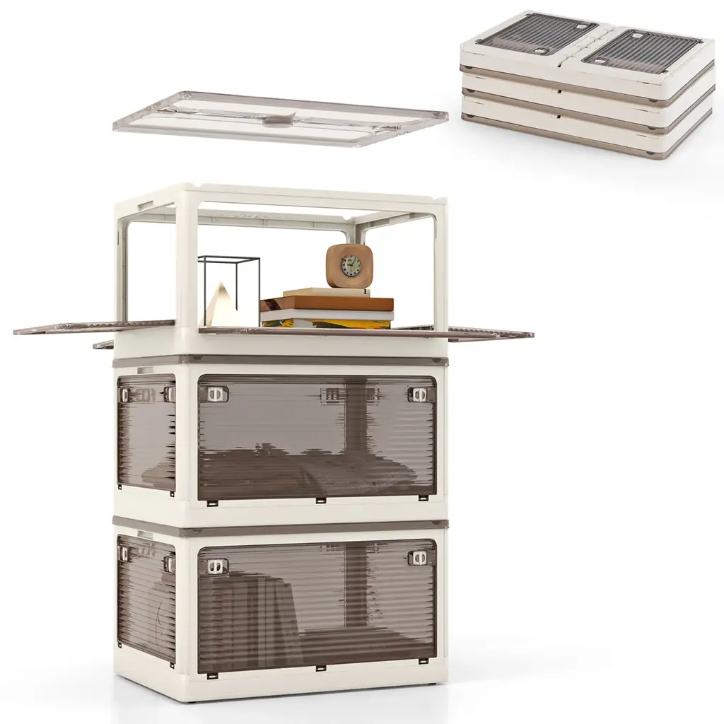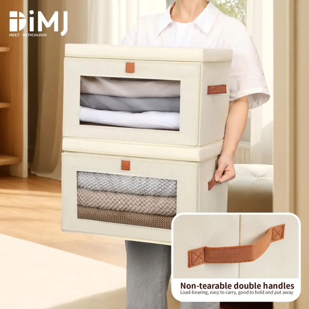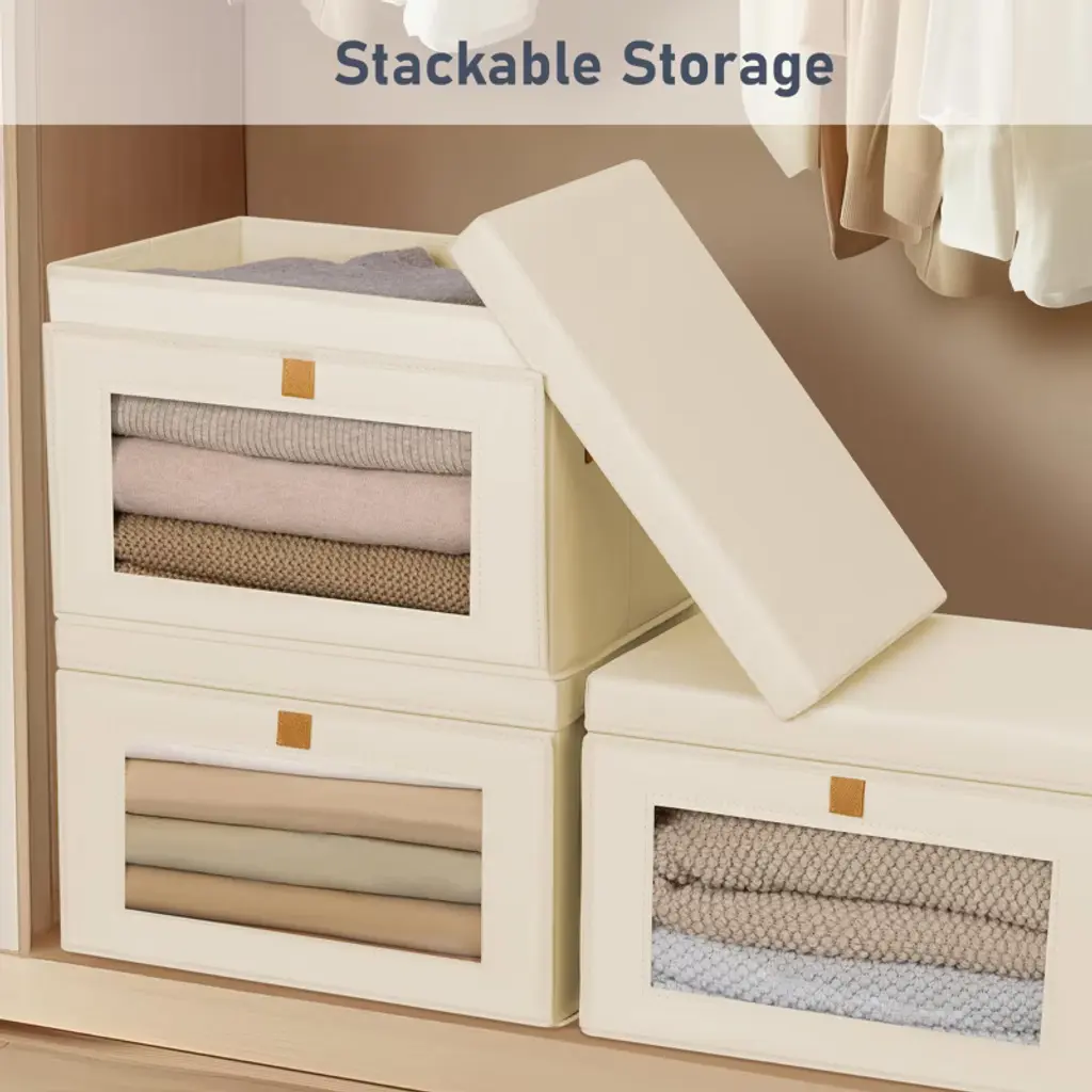 Transform your home organization with these spacious storage bins featuring a front-opening design and clear PVC windows, making it easy to see and access your items even when stacked high. Built from sturdy fabric with reinforced cardboard and double-stitched handles, these collapsible boxes ensure reliable support and convenient portability for blankets, books, clothes, and more. Perfect for closets, shelves, or under the bed, they¡¯re ideal for keeping any space tidy and stylish while easily folding away when not in use.