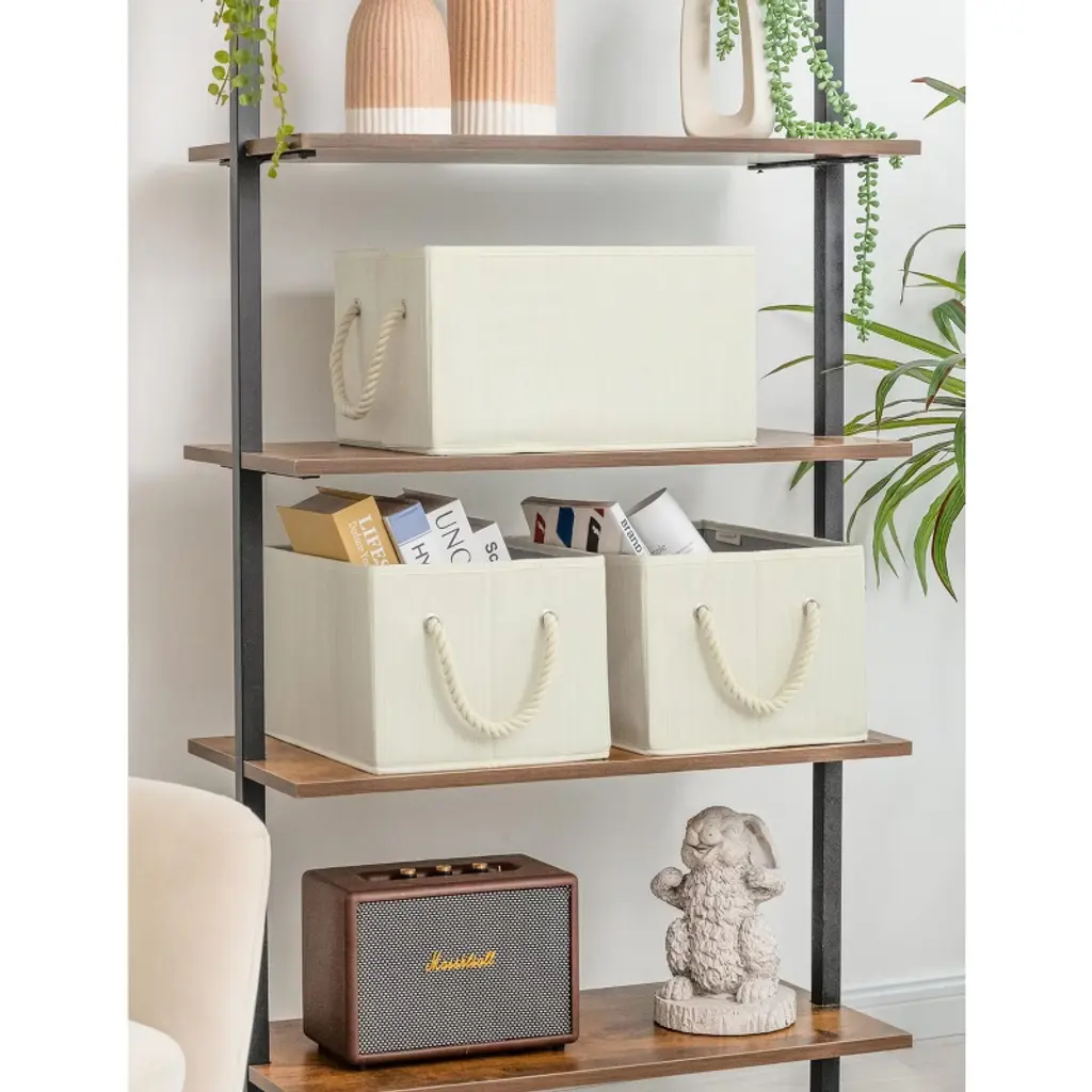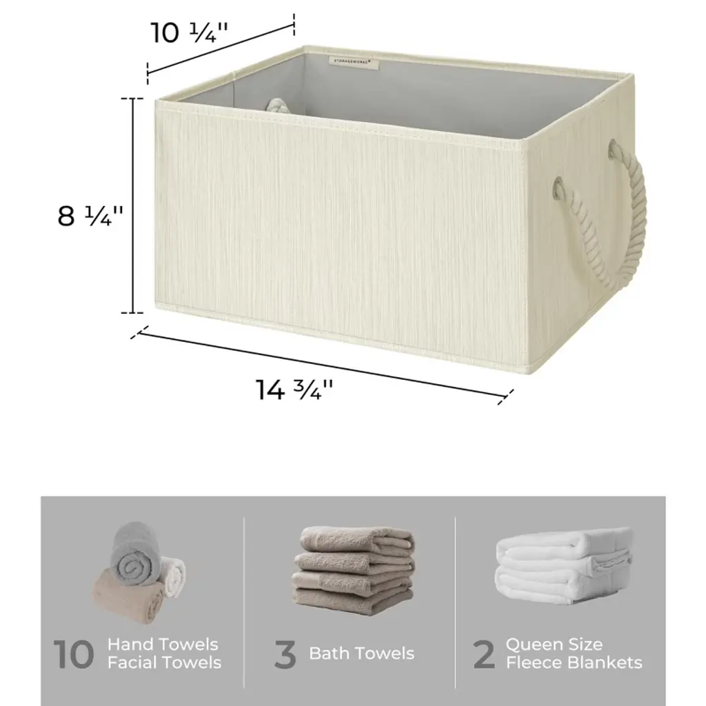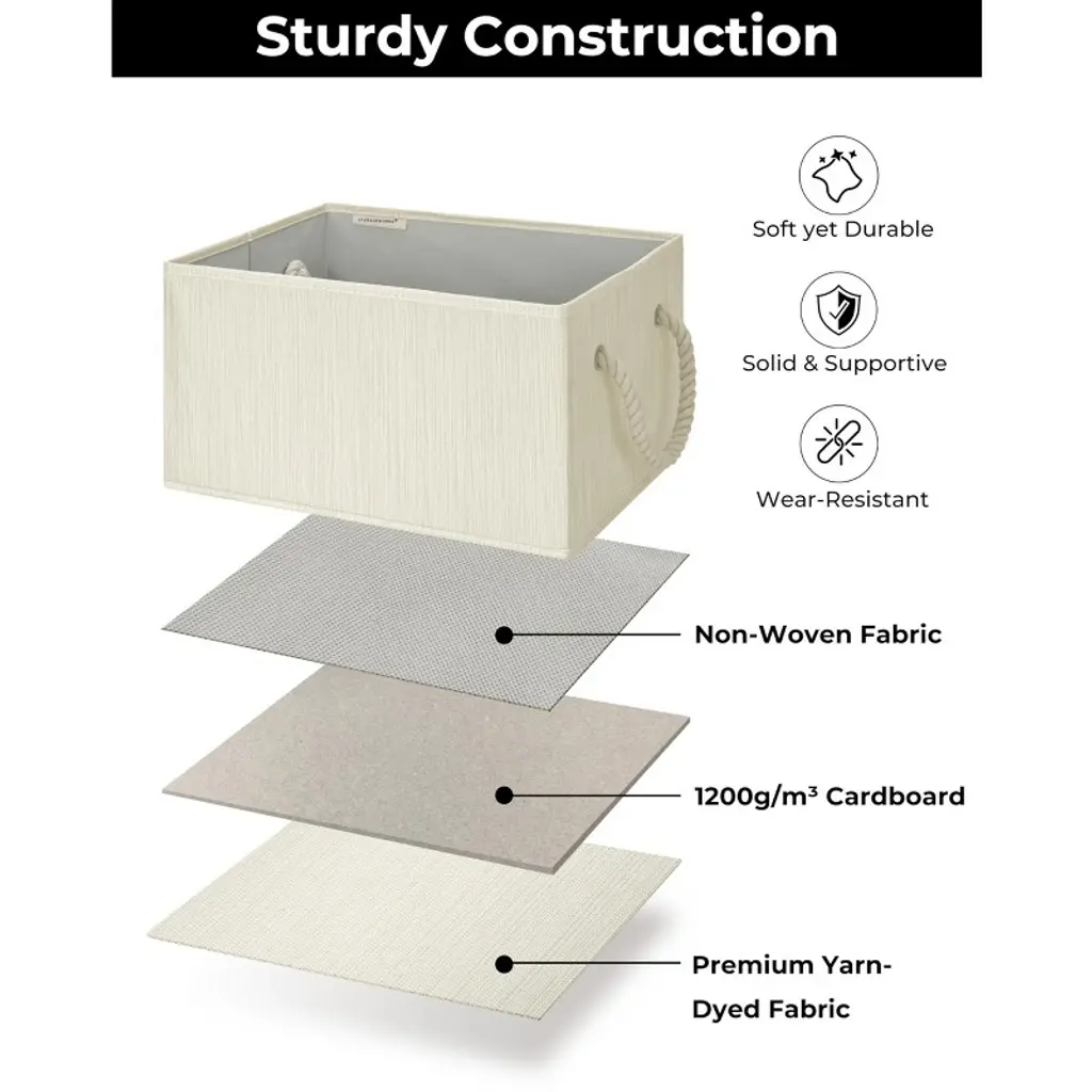 Aoibox Large Foldable Storage Baskets With Handles For Shelves Fabric Organizer Bins Beige White Ivory 3 Pack