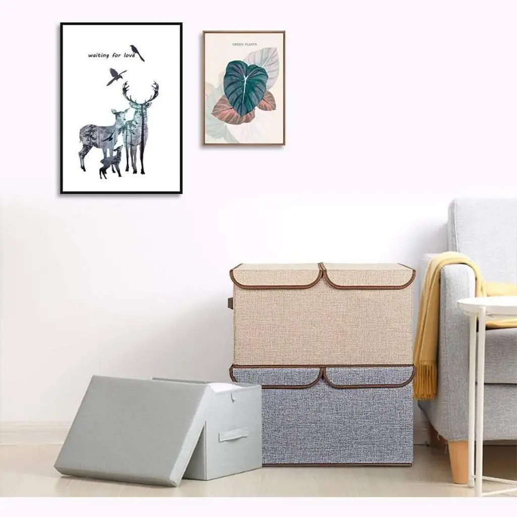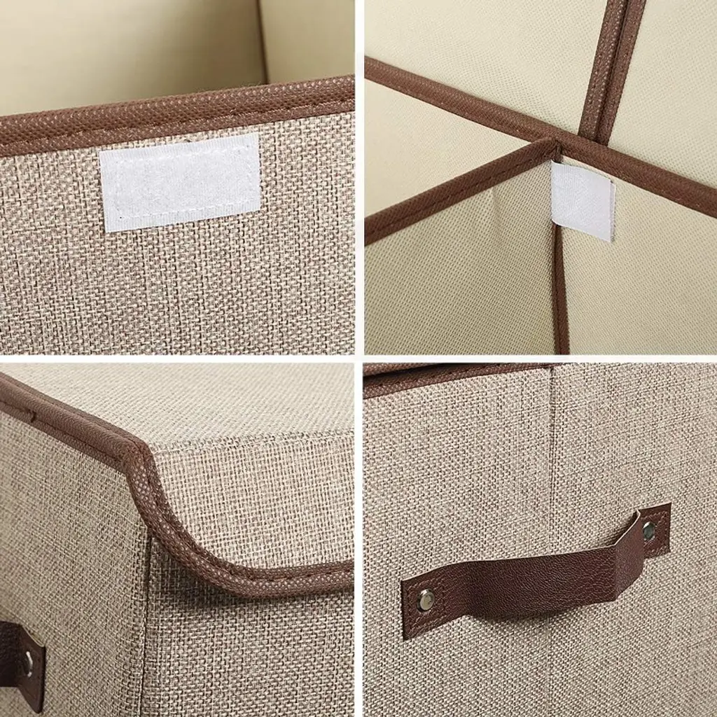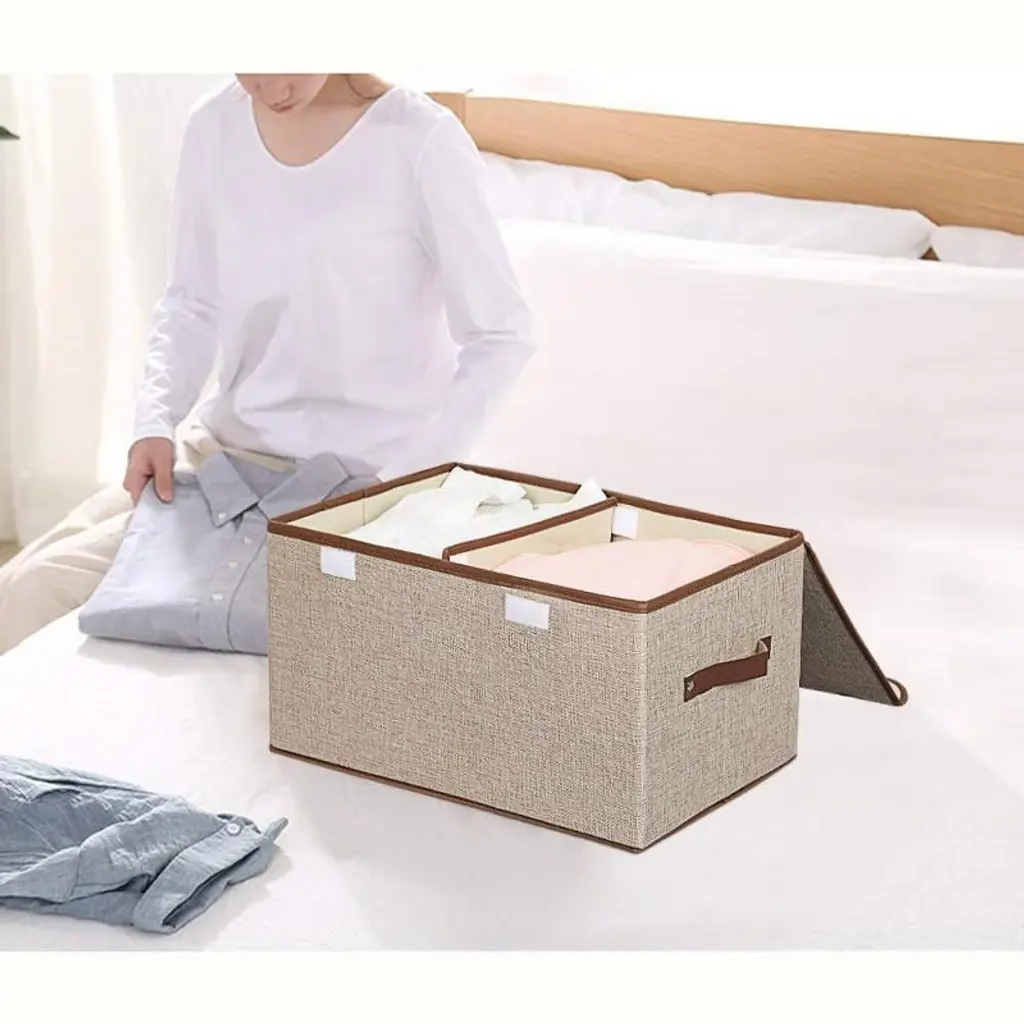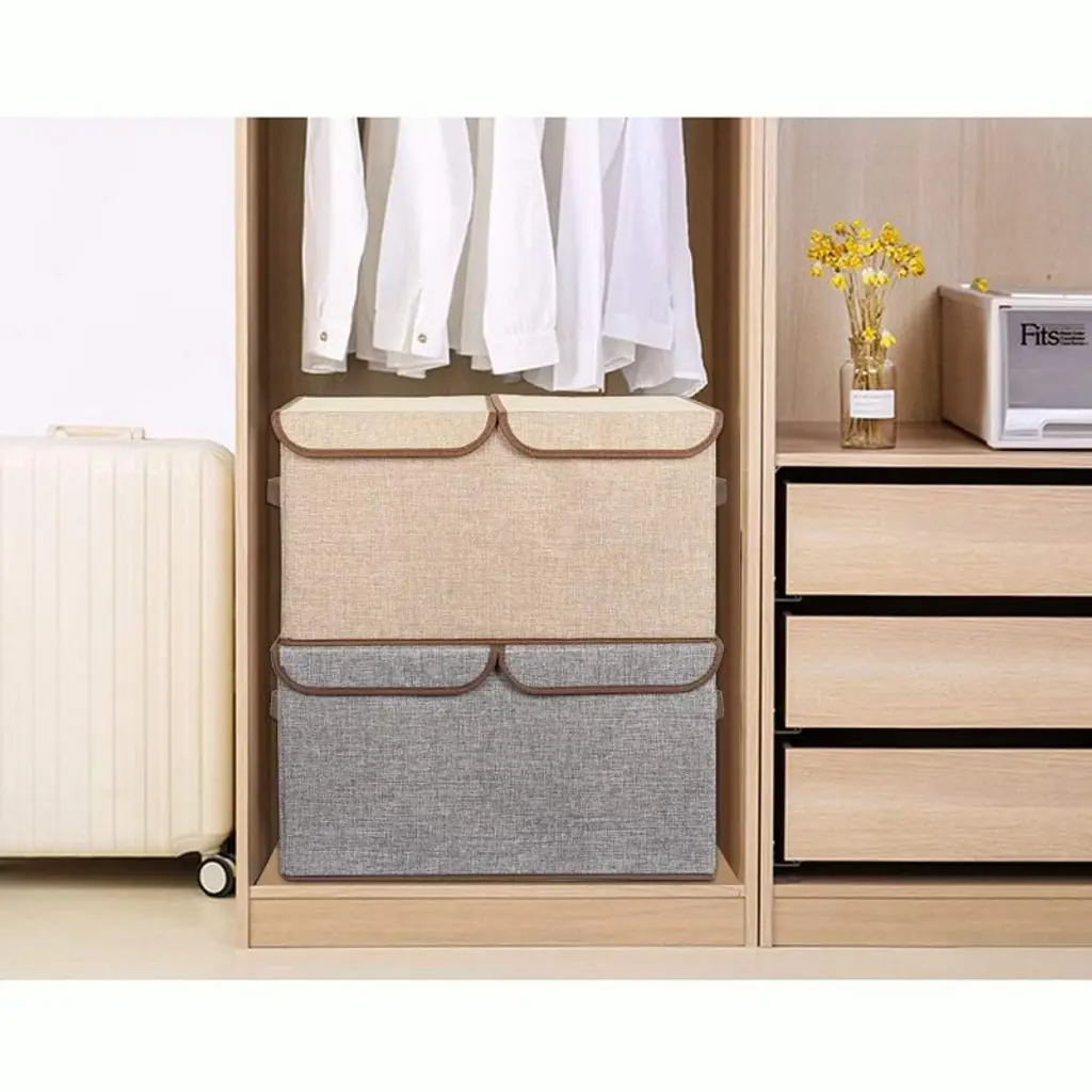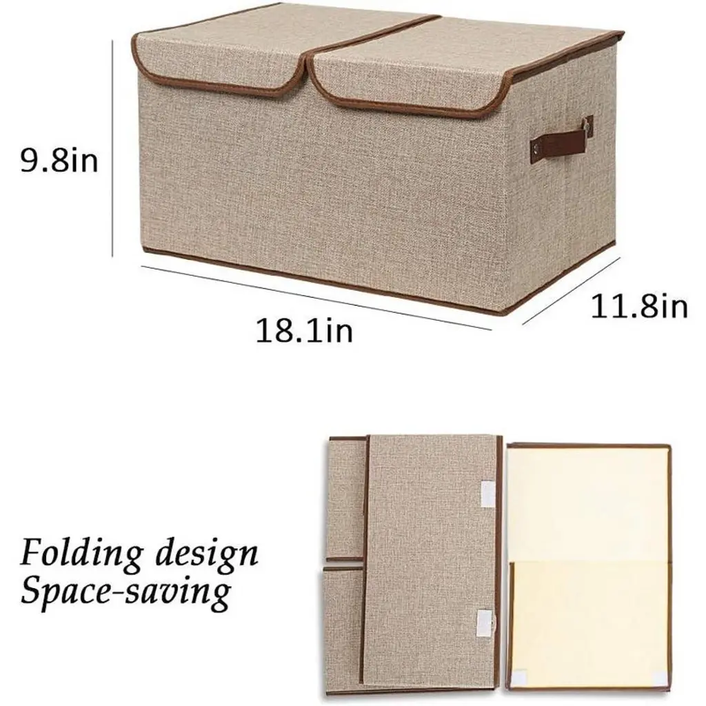 Aoibox Large Linen Fabric Foldable Storage Bin With Lid And Handles Khaki Dual Compartment Organizer For Closet Home