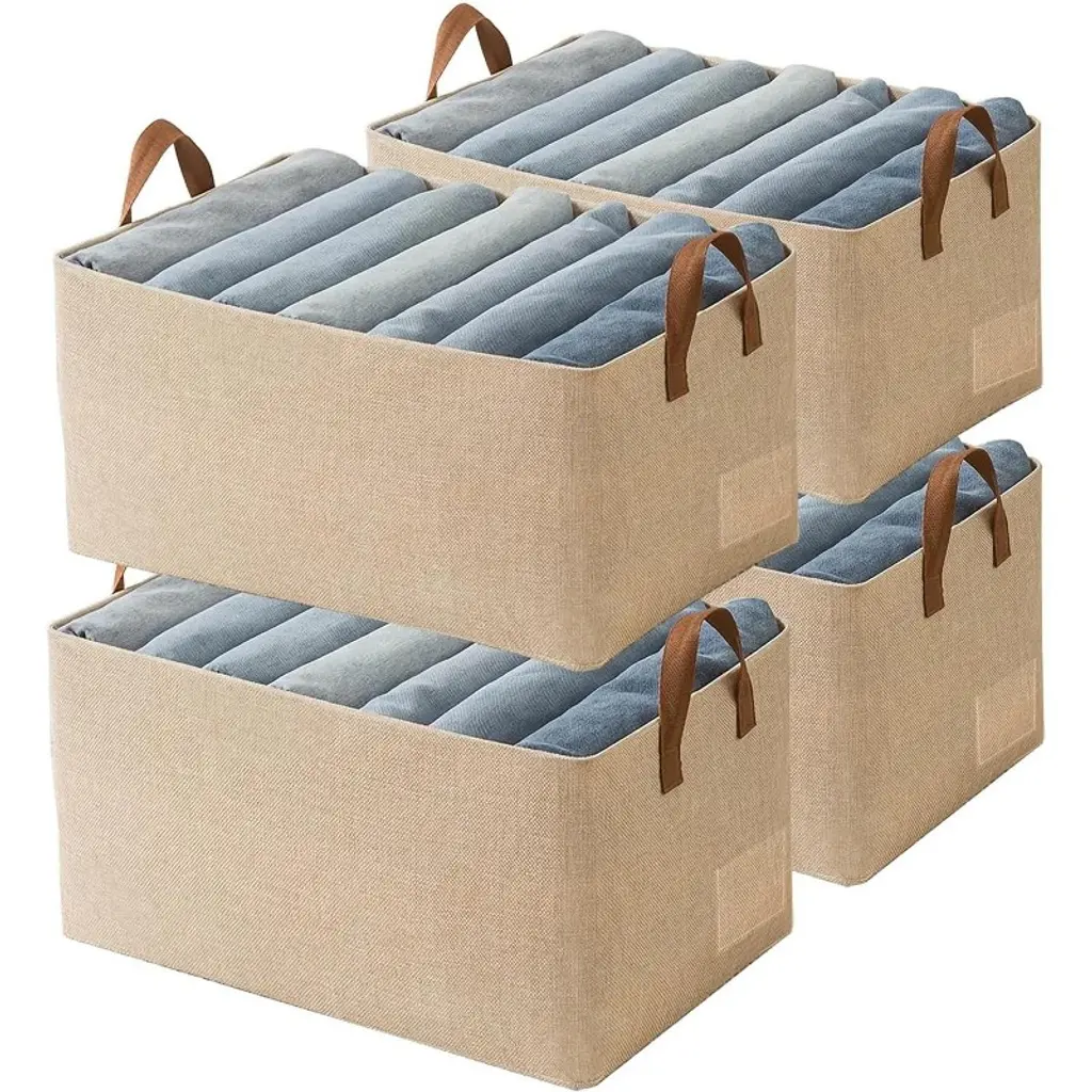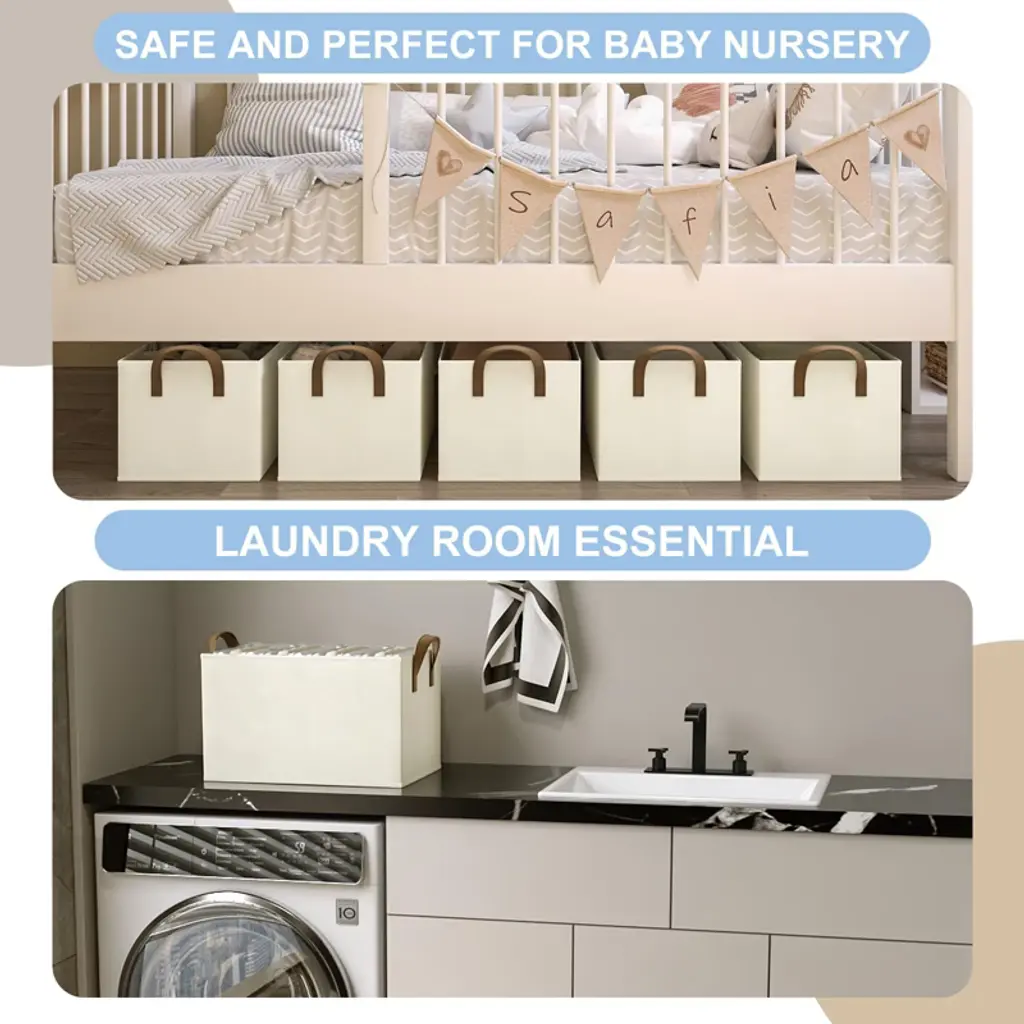 Keep your home tidy and clutter-free with these large linen storage bins, featuring a sturdy structure and generous space for all your essentials. Versatile enough for bedrooms, closets, nurseries, and more, their neutral design blends seamlessly with any d¨¦cor while soft leather handles ensure effortless portability. When not in use, simply fold them flat to save space without sacrificing style or functionality.