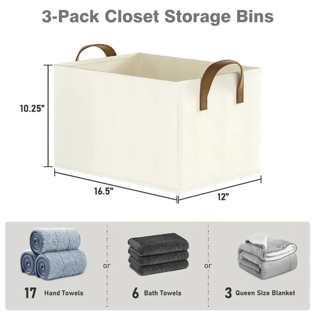 Aoibox Large Linen Storage Bins For Shelves 3 Pack Collapsible Closet Organizer Baskets With Handles Beige Foldable