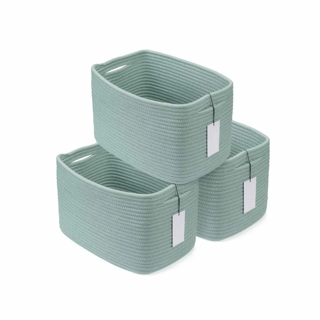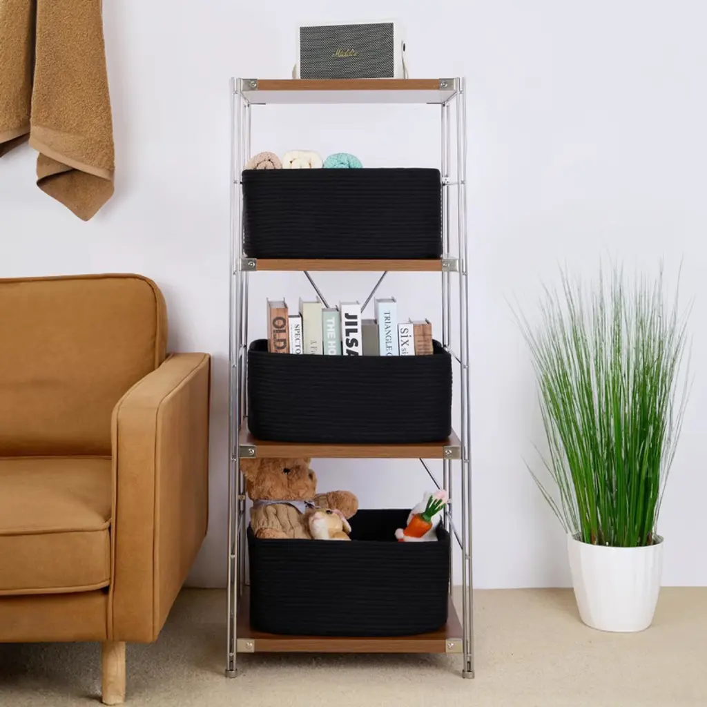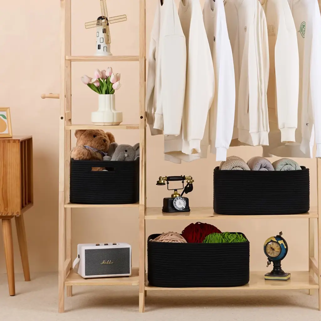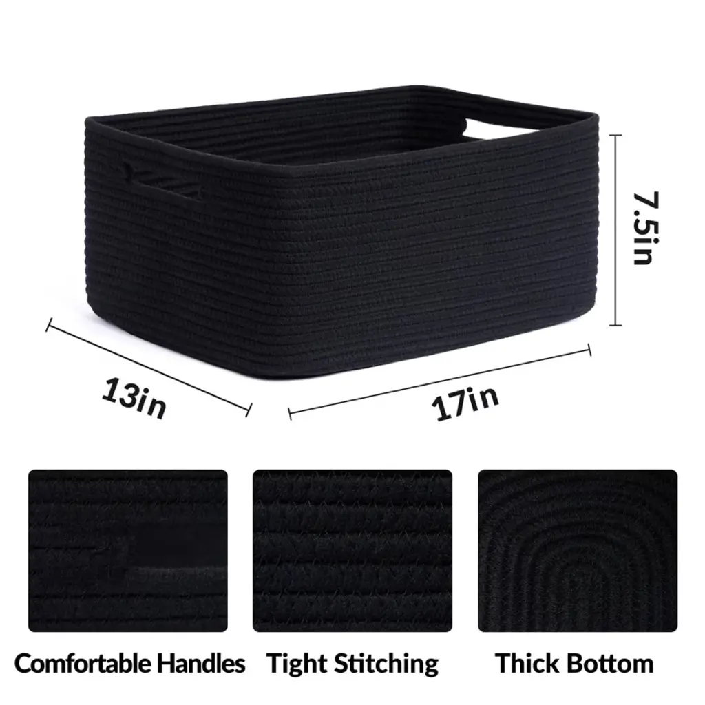 Aoibox Large Storage Baskets For Shelves Closet Organizer Woven Rope Bins For Clothes Toys Blanket Black 3 Pack