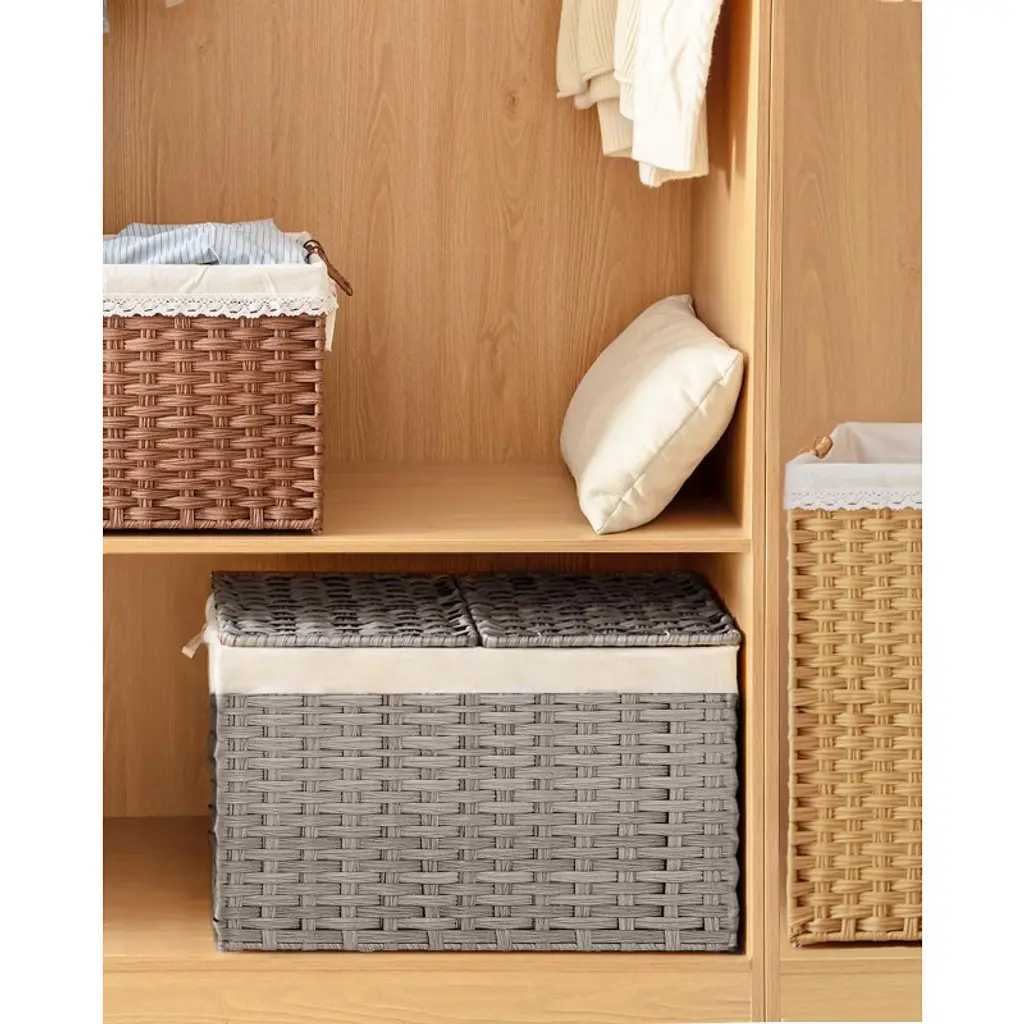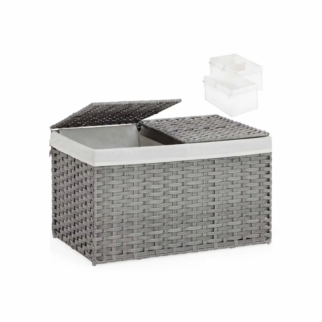 Aoibox Large Wicker Storage Basket With Lid 42.3 Gallon 2 Separate Lids Removable Liners Rattan Organizer Gray