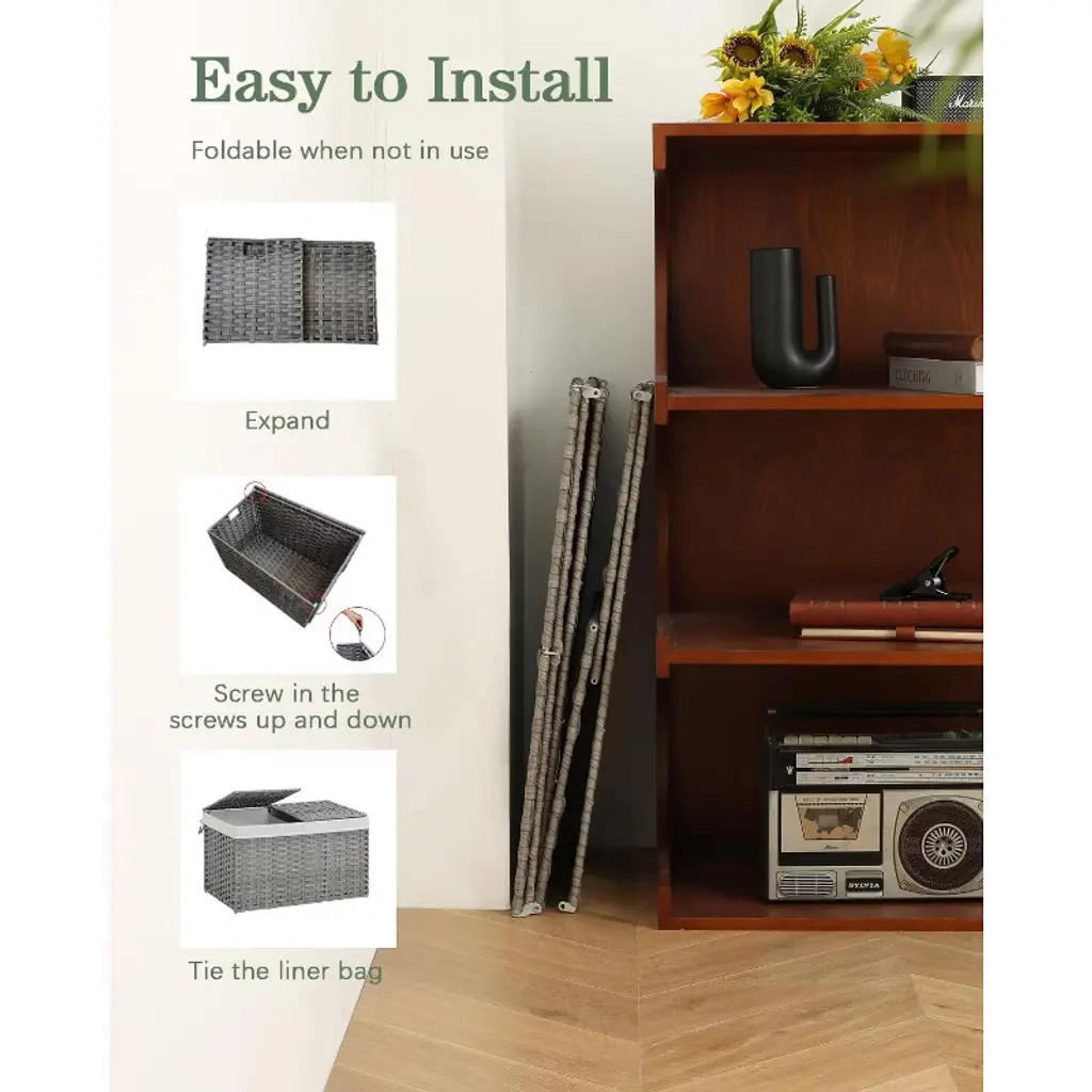 Declutter your space with this spacious wicker storage basket, featuring dual lids for easy organization and a generous 42.3-gallon capacity to neatly store blankets, clothes, and more. With two removable, washable liners and a durable hand-woven rattan design, it combines convenience with timeless style. Easy to assemble and compact to fold away, this basket offers practical storage without sacrificing elegance in your bedroom or laundry area.