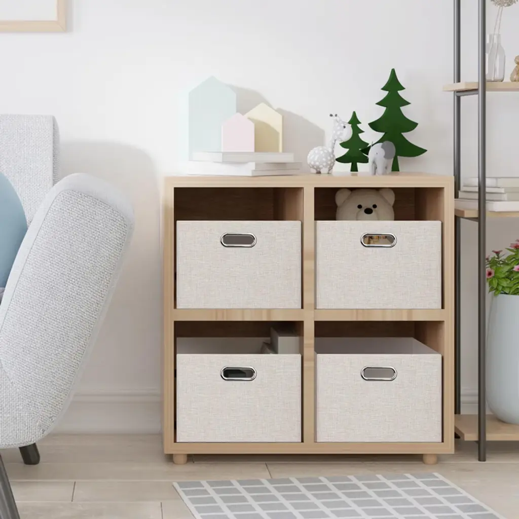 Aoibox Linen Fabric Closet Shelf Storage Bins Beige Foldable Organizers Box With Metal Handles 4 Pack 15x10.5x8.25 Inch