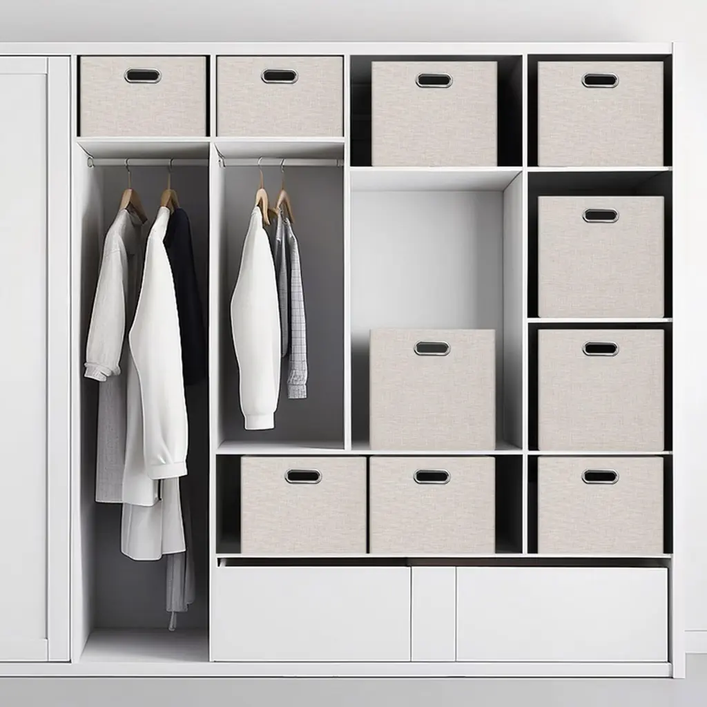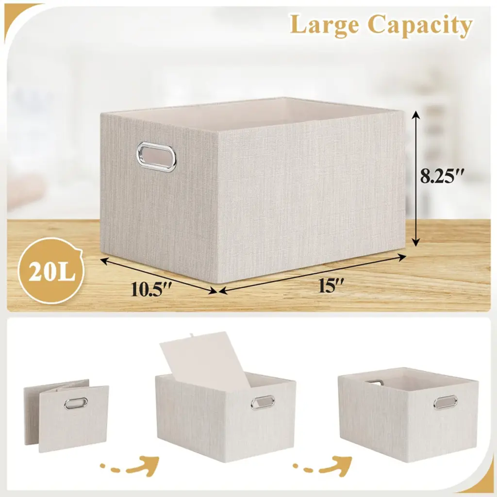 Transform your space with these elegant linen storage bins, crafted with sturdy materials and sleek metal handles for effortless organization and style. Each spacious bin holds up to 20 liters, making it perfect for clothes, toys, or accessories, and its neutral design blends beautifully with any decor. Easily assemble or fold them when not in use to save space and keep your closet, bookshelves, or cabinets perfectly tidy.