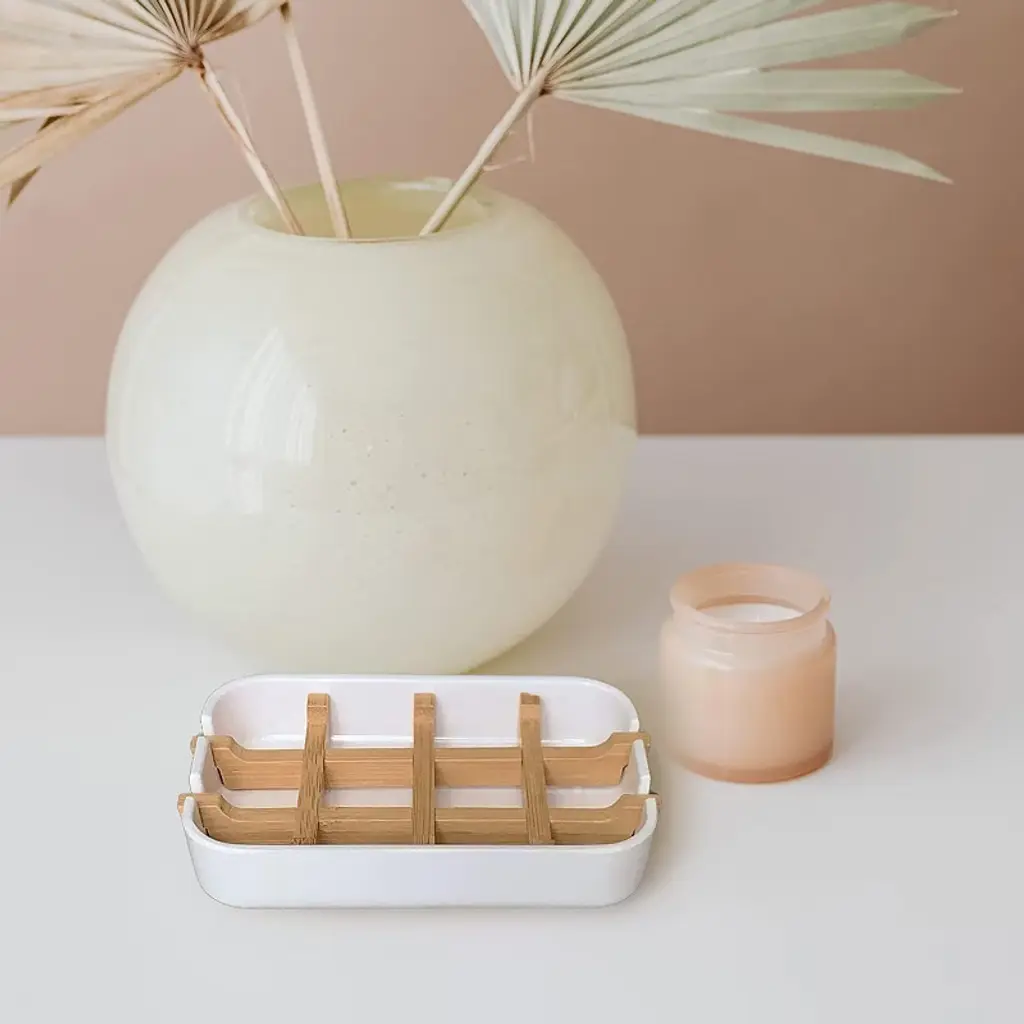Discover this amazing soap holder and dish combination! Crafted from high - quality bamboo, it's not only harmless but also has higher hardness than ordinary plastic soap boxes. Unlike traditional ones, it's removable and easy to clean, combining the functions of a soap box and a holder. Using it is a breeze - just put the soap on it. The quick - draining soap dish and the design that prevents soapy water from flowing out ensure your soap stays in good condition. It's a great fit for various places like bathrooms, shower rooms, kitchens, and bar sinks, adding a touch of modernity and practicality to your daily life.