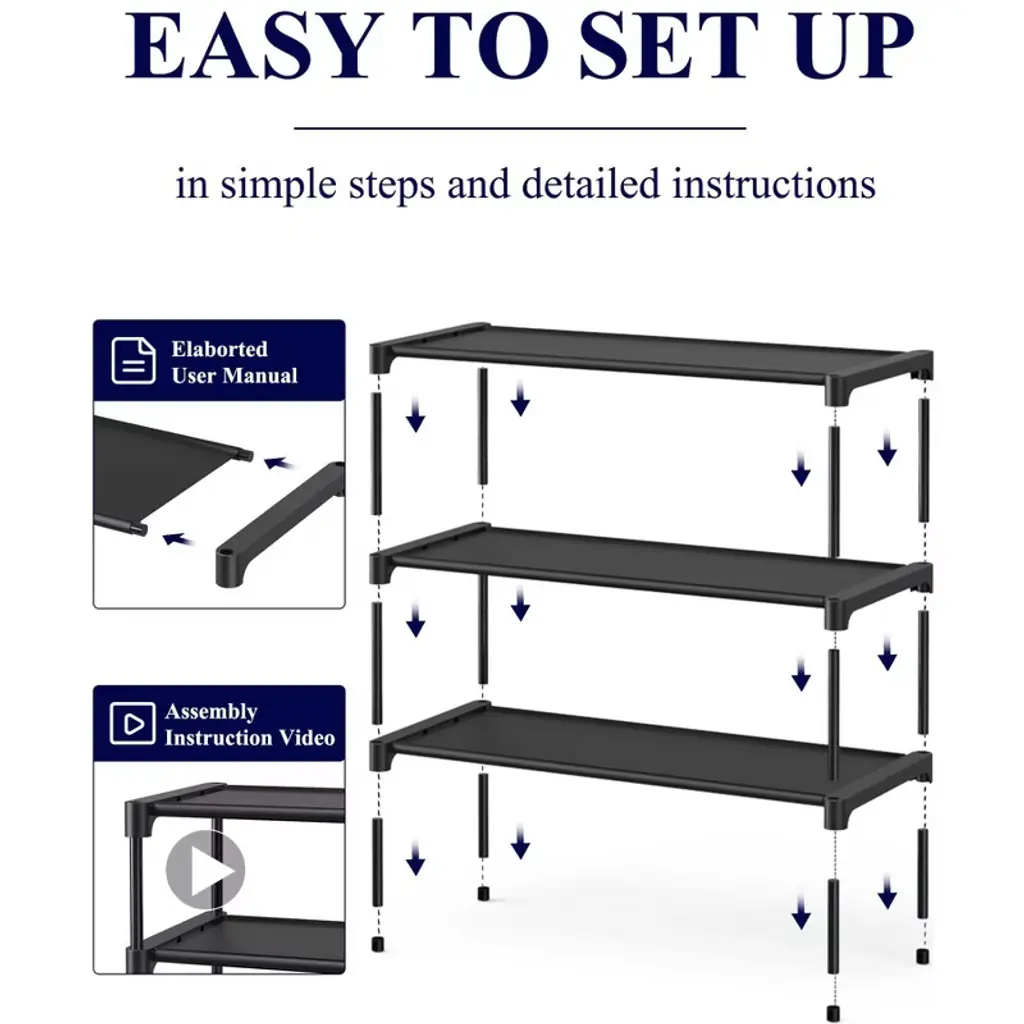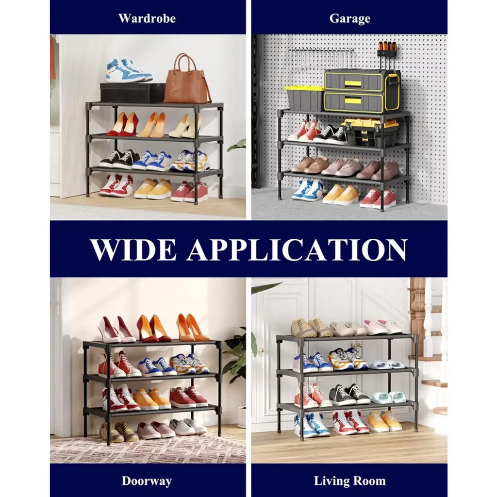 Aoibox Non-woven Shoe Rack Shelf, Sturdy Stackable Shoe Organizer For Closet, Entryway, Garage & Corridor, Medium, Black