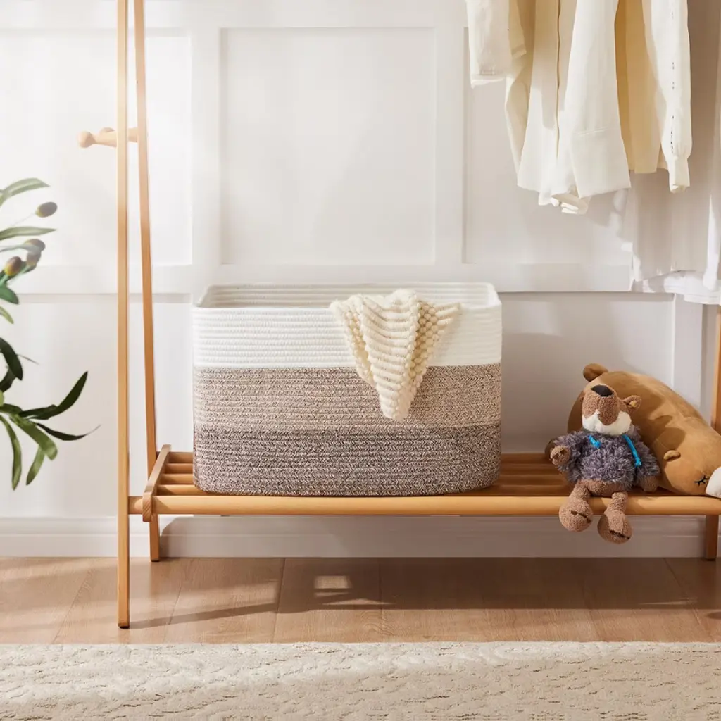Elevate your home with this elegant woven storage basket, expertly crafted from 100% natural cotton for durability and breathability. Perfect for organizing laundry, toys, blankets, or magazines, its versatile rectangular design seamlessly fits into nurseries, living rooms, or any space in need of a stylish tidying touch. Smooth edges and easy maintenance make it a safe and functional addition for families seeking both beauty and practicality.