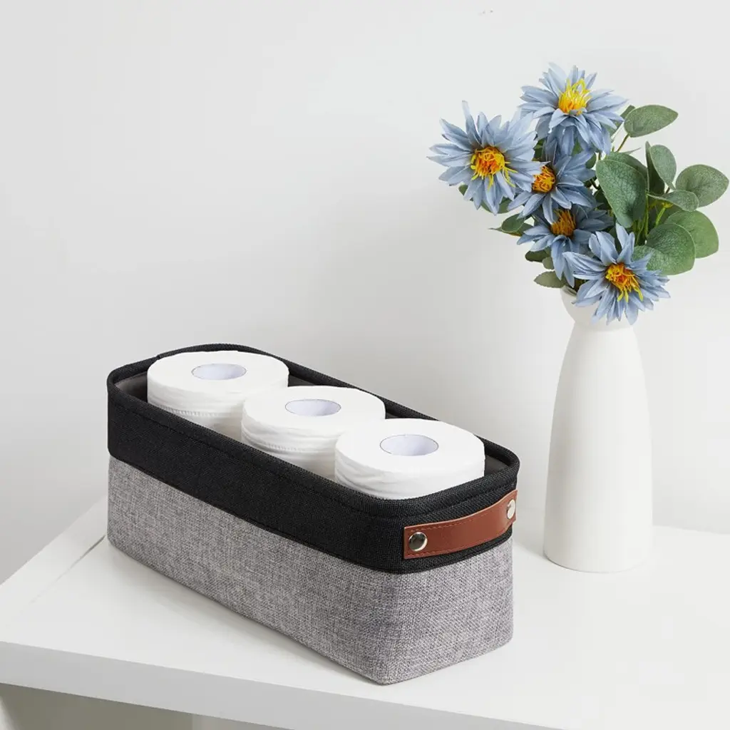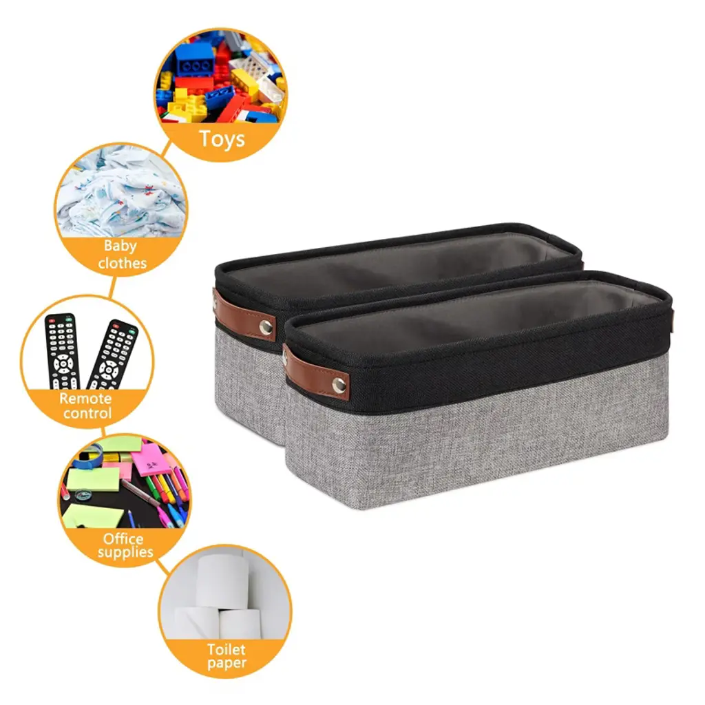 Aoibox Small Fabric Bathroom Storage Baskets Foldable Organizer Bins For Toilet Home Closet Black Grey 2 Pack