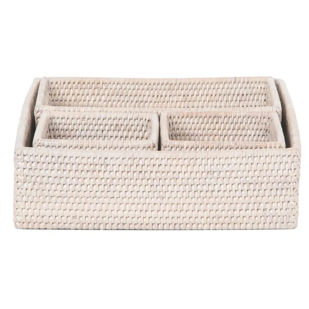 Aoibox Small Rectangular Seagrass Storage Basket With Lid Woven Shelf Organizer 3 Sections For Snack Tampon Toys Drawer