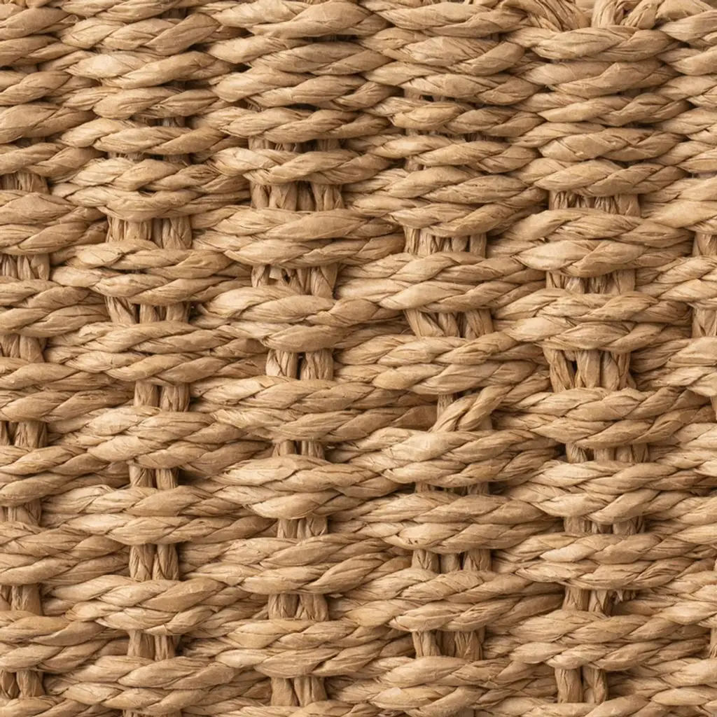 Elevate your home organization with this set of three handwoven storage baskets, crafted from sustainable recycled paper and accented by elegant vegan leather trimmings. The flexible, lightweight design with easy-grip ring handles offers versatile storage solutions for nightstands, shelves, drawers, or bathrooms. Available in three convenient sizes, these decorative baskets seamlessly combine style and practicality to enhance any living space.