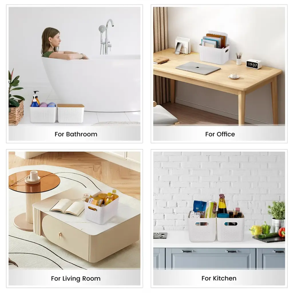 Upgrade your home or office organization with these modern storage bins, featuring sturdy plastic construction and elegant bamboo lids for a touch of natural style. The stackable, compact design and built-in handles maximize your space while keeping everything from toys and books to kitchen and office supplies neat and accessible. Perfect for any room, these versatile containers blend seamlessly with your decor to transform clutter into order.