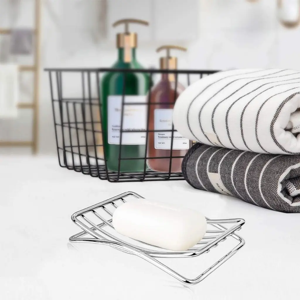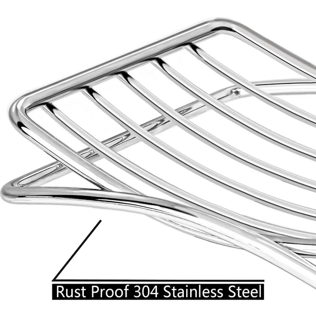 Upgrade your daily routine with this high - quality soap dish. Made of premium 304 stainless steel, it's rust - proof and corrosion - resistant, promising long - term use. The self - draining slatted metal wire design is a game - changer. It allows water to drain quickly, keeping your bar soap dry and clean, and extending its life. The low arched bottom ensures it stays in place on any countertop, whether in the shower, bathroom, or by the kitchen sink. The gentle slope holds the soap or sponge firmly, making it easy to access and clean. With a luxury chrome finish, it not only serves a practical purpose but also adds a touch of modern style to your bathroom decor. It fits all soap shapes and sizes. Simply place your soap on the dish, and it'll do the rest. Ideal for multiple settings, it brings convenience to your daily life.