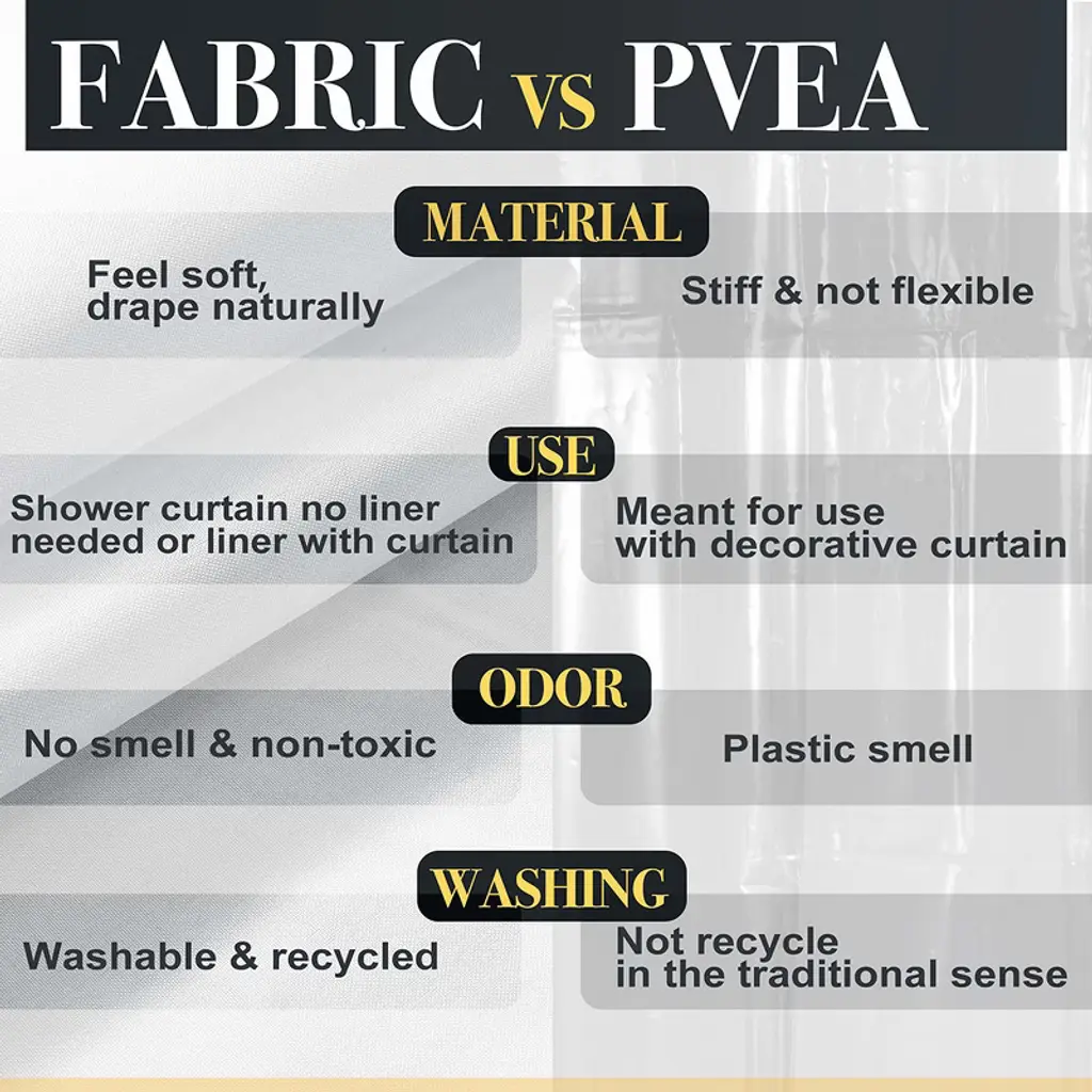 Upgrade your bathroom with this ultimate waterproof fabric shower curtain or liner. It's made of premium polyester fabric with a soft TPU coating, making it 100% waterproof and quick - drying. Unlike vinyl and plastic alternatives, it's PVC - free, non - toxic, and eco - friendly. The breathable fabric ensures a more comfortable showering experience. It's easy to maintain as it's machine washable. With a durable design featuring a reinforced top header and 12 holes, it won't tear easily and will last a long time. Whether you use it as a standalone curtain or a liner, it adds a touch of luxury to your bathtub, suitable for any bathroom style.