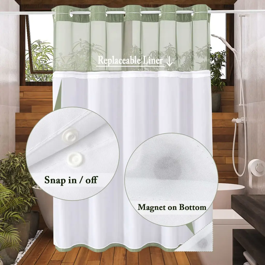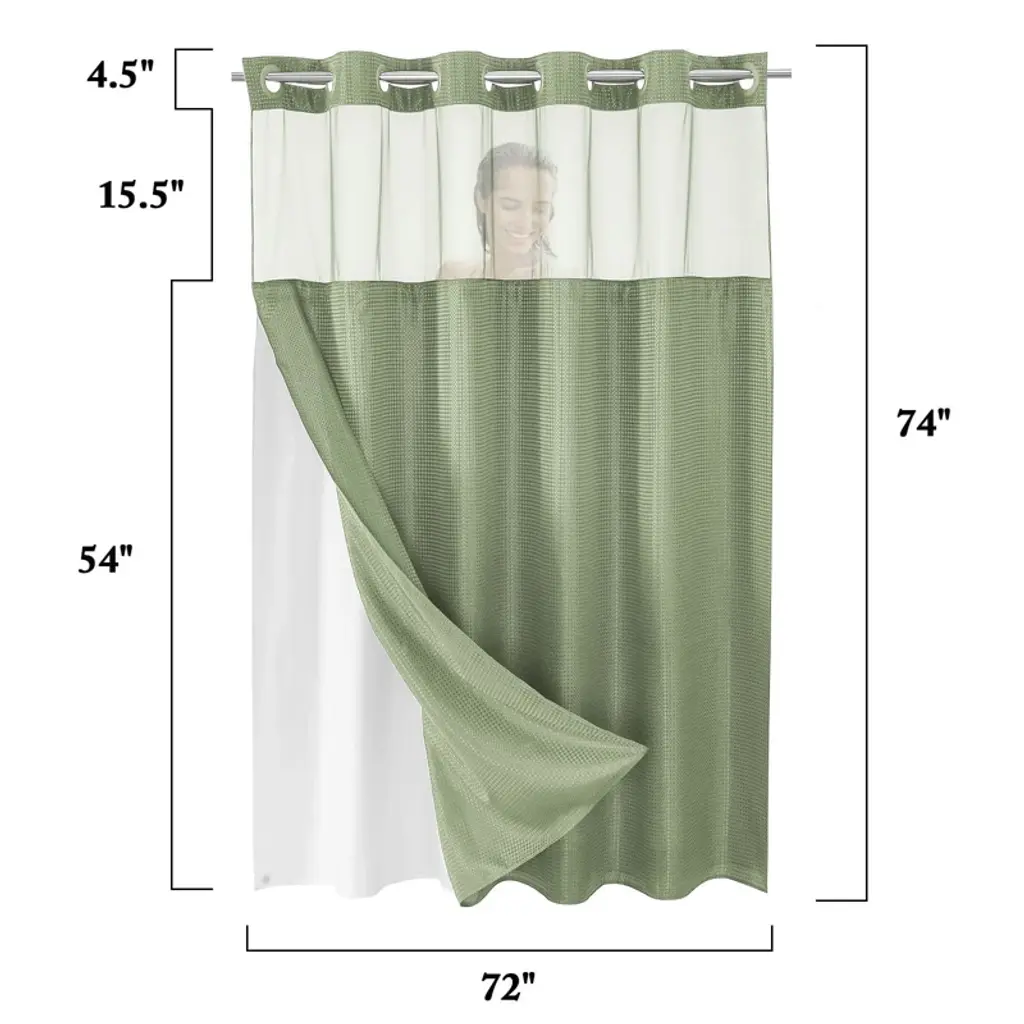 Upgrade your bathroom with this high - quality shower curtain set. The set features a soft waffle fabric shower curtain with beautiful piecing details, giving your bathroom a hotel - style elegance. The mesh upper panel not only allows light in and promotes air circulation but also maintains privacy, creating a spa - like shower experience. The snap - on/off fabric liner is removable for easy cleaning or replacement, and it has bottom magnets for stability. With a hook - free design, you don't need to buy hooks or remove the rod, making it a breeze to install and use. The set comes with a shower curtain and a fabric snap - on replacement liner. Made of waterproof and washable materials, it's suitable for daily use in your bathroom, providing long - lasting performance and easy maintenance. Transform your bathroom into a luxurious retreat with this practical and stylish shower curtain set.