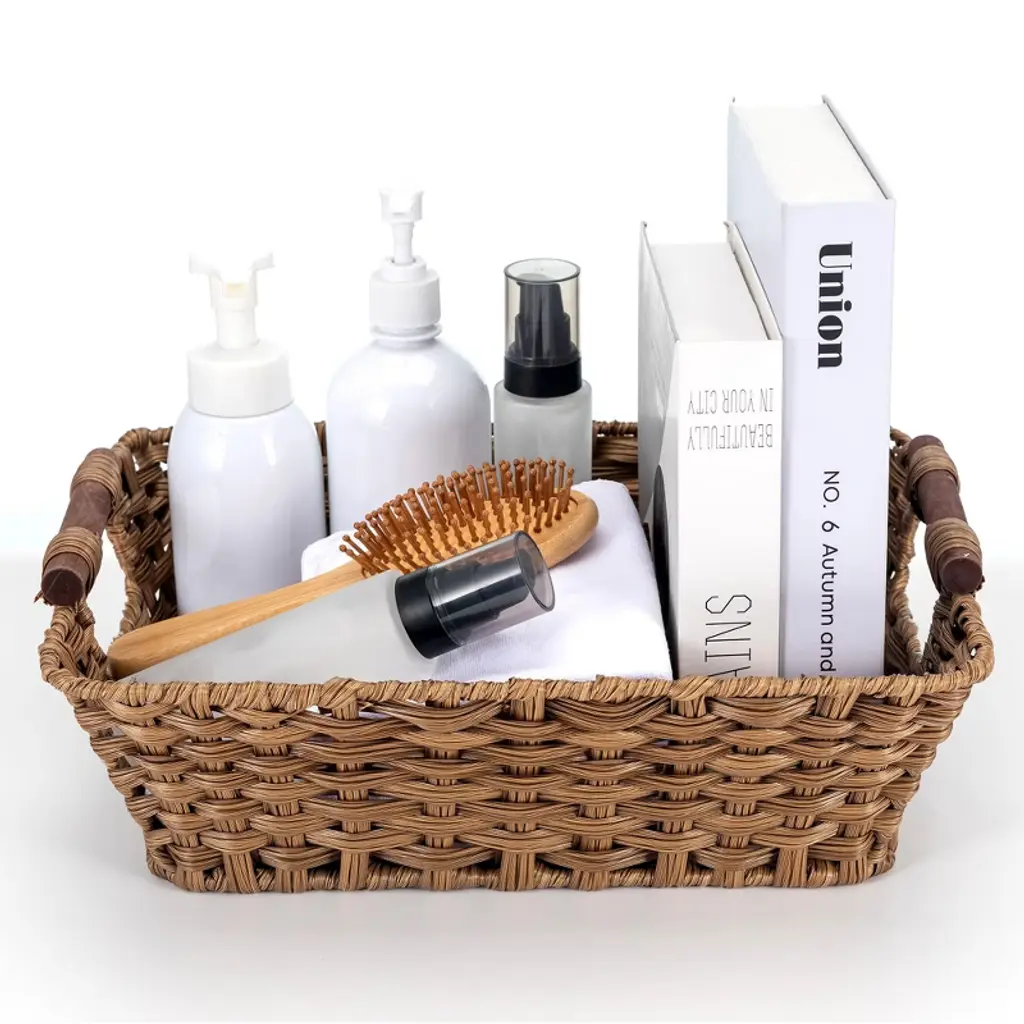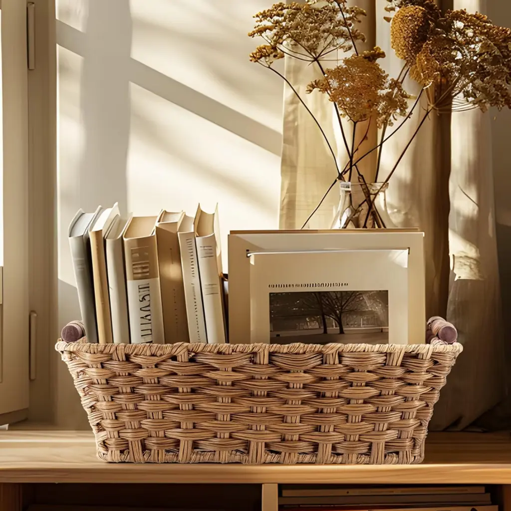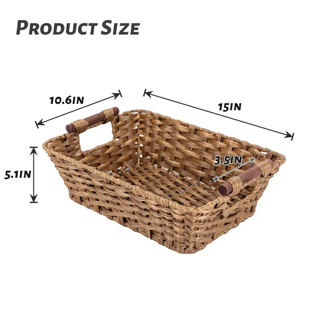 Upgrade your home organization with these hand-woven waterproof baskets, expertly crafted from durable polypropylene to resist spills and moisture while keeping cleaning effortless. Featuring reinforced wood handles and a space-saving, stackable design, they seamlessly fit shelves, counters, or any room needing stylish storage. Their earthy woven texture complements a variety of decor styles, offering both elegance and versatility for your pantry, living room, or bathroom.