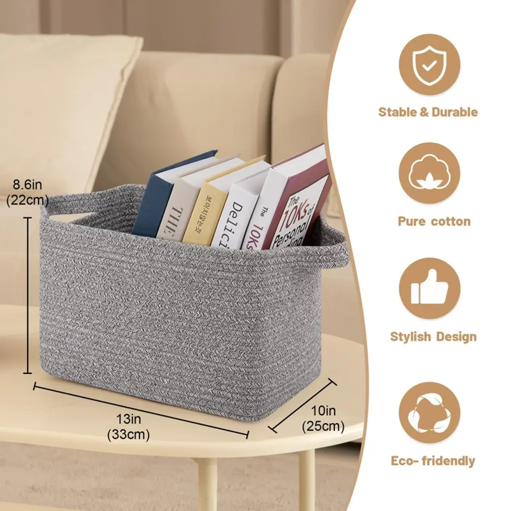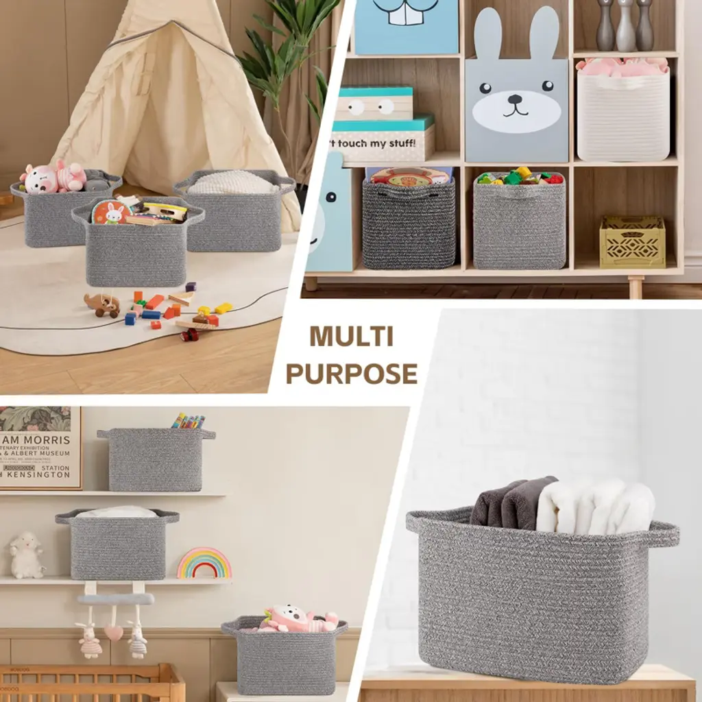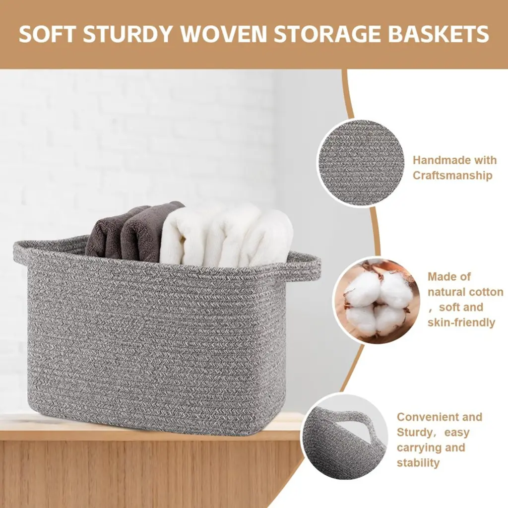 Add stylish organization to any room with these soft cotton rope storage baskets, perfect for toys, books, clothes, or towels. Crafted from high-quality, chemical-free materials, they¡¯re gentle to the touch and durable enough for daily use anywhere in your home. With spacious interiors, sturdy handles, and a sleek woven design, these baskets make tidying up both easy and beautifully decorative.