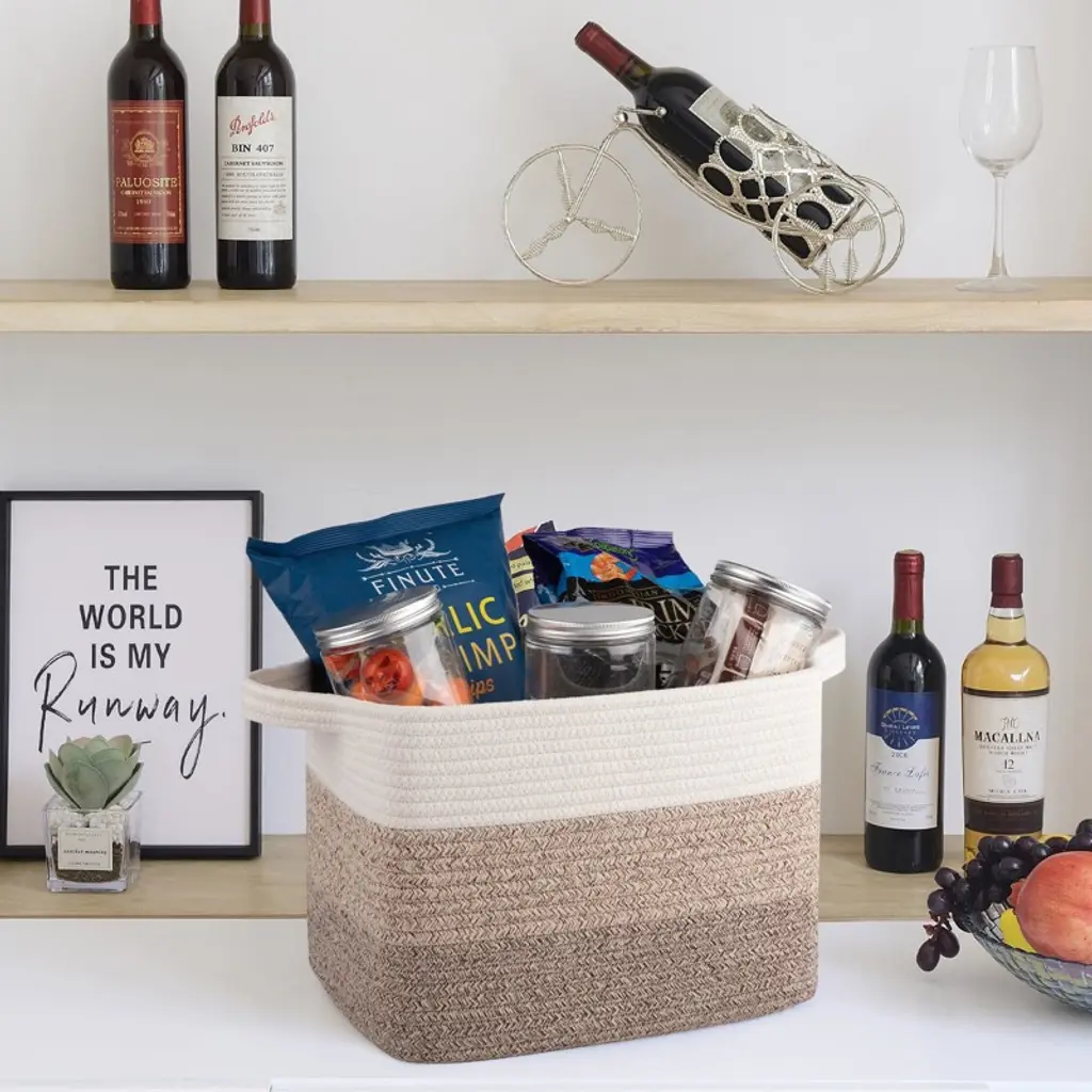 Aoibox Woven Cotton Rope Storage Baskets Set Of 3 Gradient Yellow Large Capacity For Toys Towels Bathroom Closet Organization