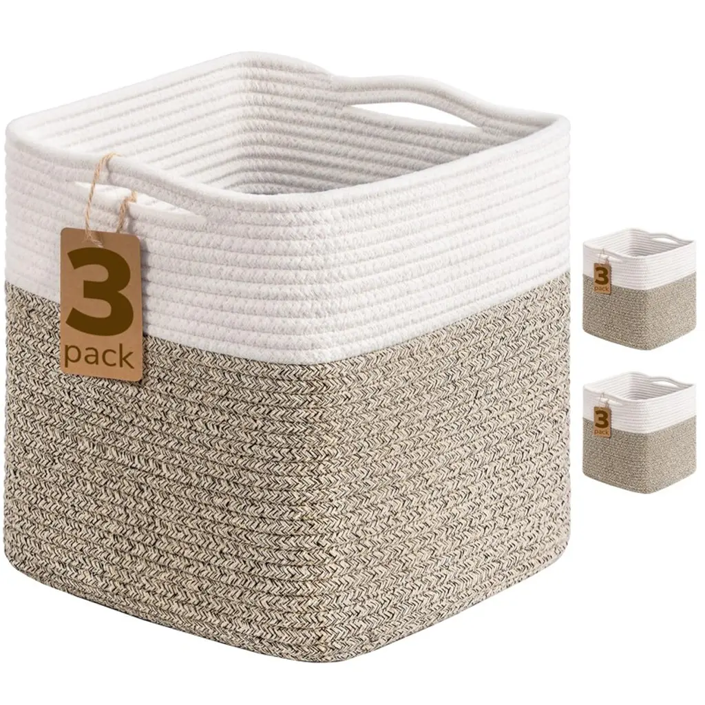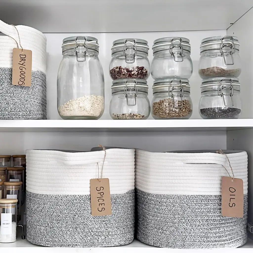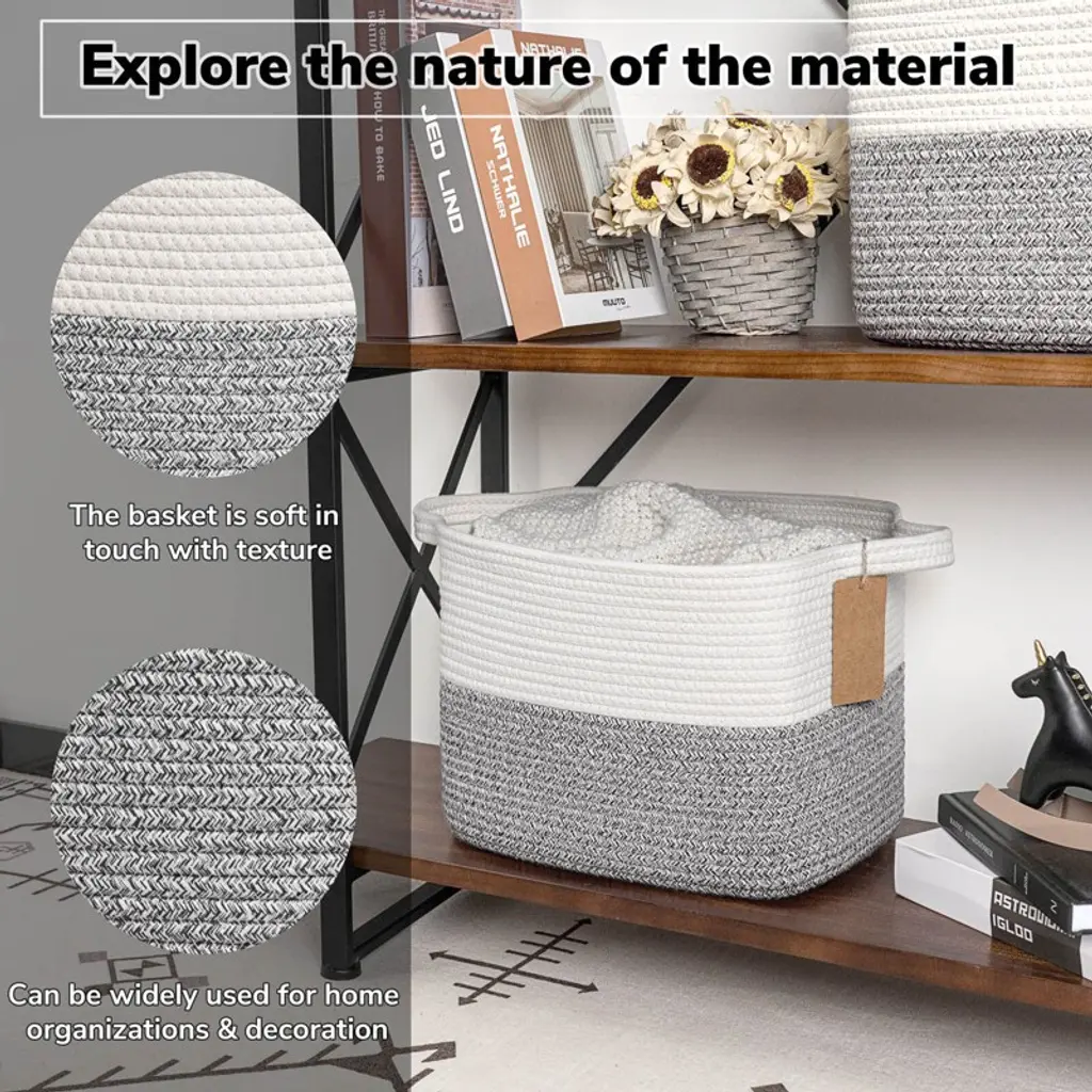 Organize any room beautifully with these soft woven storage baskets, perfectly sized for shelves, closets, or nurseries. Thoughtfully designed with built-in handles and convenient labels, each basket makes finding your essentials simple while adding a neutral decorative touch to your home. Made from gentle cotton rope, these versatile bins are ideal for everything from clothes and toys to towels and blankets, keeping your space tidy and stylish.