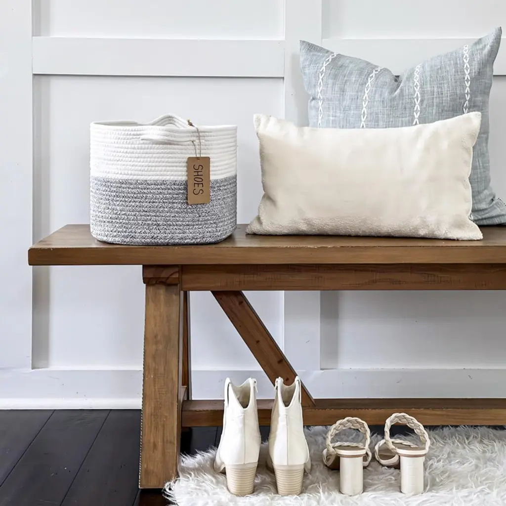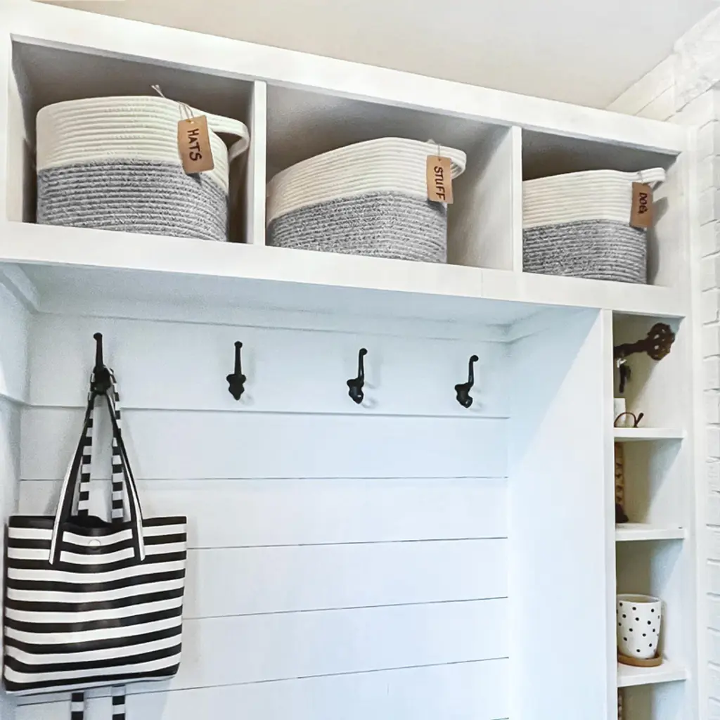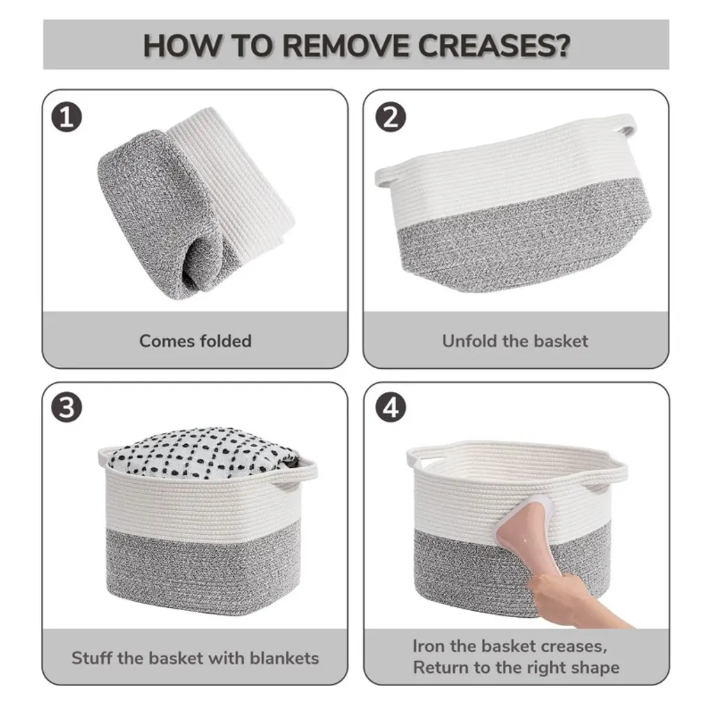 Organize any room beautifully with these soft woven storage baskets, perfectly sized for shelves, closets, or nurseries. Thoughtfully designed with built-in handles and convenient labels, each basket makes finding your essentials simple while adding a neutral decorative touch to your home. Made from gentle cotton rope, these versatile bins are ideal for everything from clothes and toys to towels and blankets, keeping your space tidy and stylish.