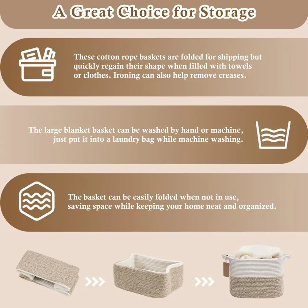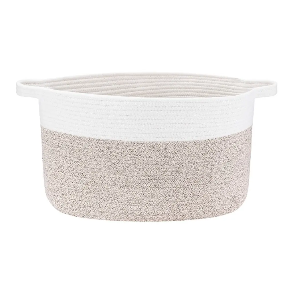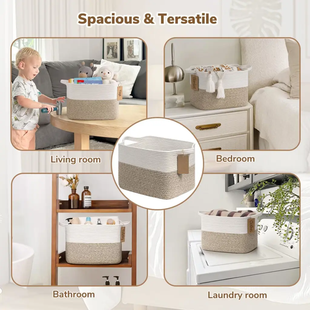 Organize your space effortlessly with this stylish woven storage basket, featuring a soft cotton rope design that's gentle for kids, pets, and delicate items. Clever built-in handles and a neutral brown and white palette make it a chic addition to nurseries, playrooms, entryways, and beyond—plus, handy labels let you instantly identify contents even on high shelves. Perfect for toys, clothes, towels, or as a practical and thoughtful gift, this durable rectangular basket adds both function and modern charm to any room.