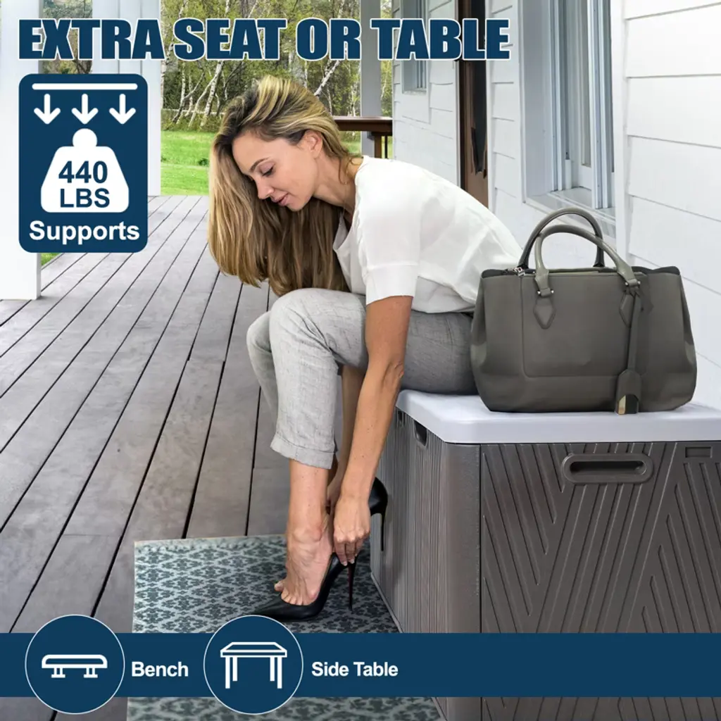 Enhance your outdoor storage with the 71 Gallon Deck Box from Aoodor. This deck box is easy to assemble and large enough as a patio storage box for patio furniture cushions, garden tools, and sports equipment. Made of durable PE material, waterproof, and sun protection, it can also be used as a bench. Double air rods and a lockable lid provide security for you and your storage.