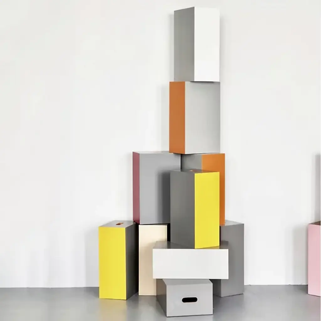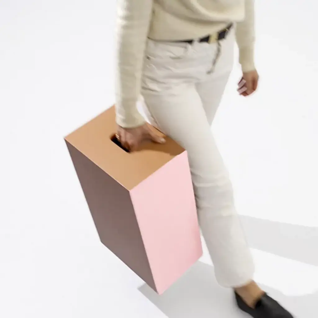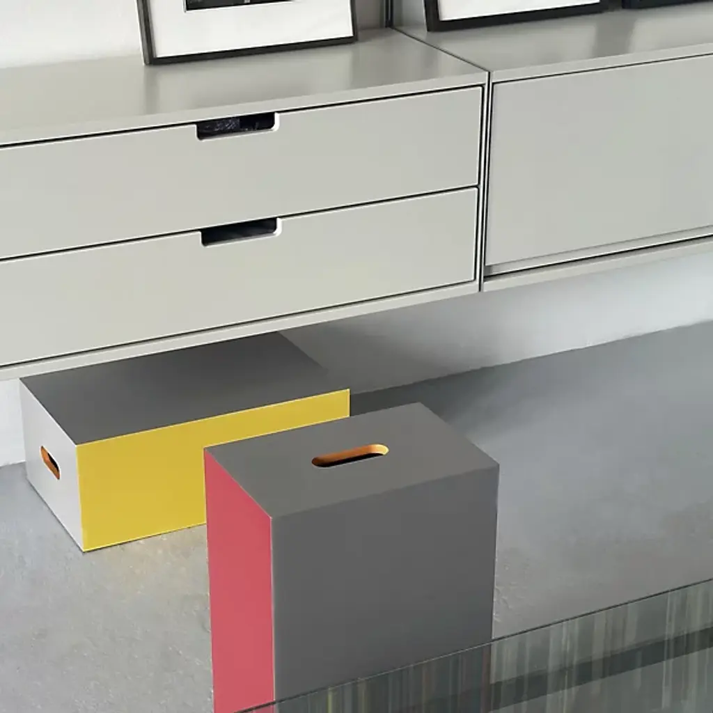 The Apple Box from Ilan lets you bring Hollywood home. Ilan Rubin designed it as a tribute to the original Apple Box, a key movie tool used to reshape any set and raise even the shortest actors to commanding heights. Made from sustainably harvested Baltic Birch plywood, this rectangular wonder can, like its Tinseltown counterpart, work as a shelf, stepstool, seat, table, or footrest. Each side panel is realized in rich color, adding an impactful accent to the straightforward form, while a single cutaway handle on a narrow end enables a secure grip and easy movement.