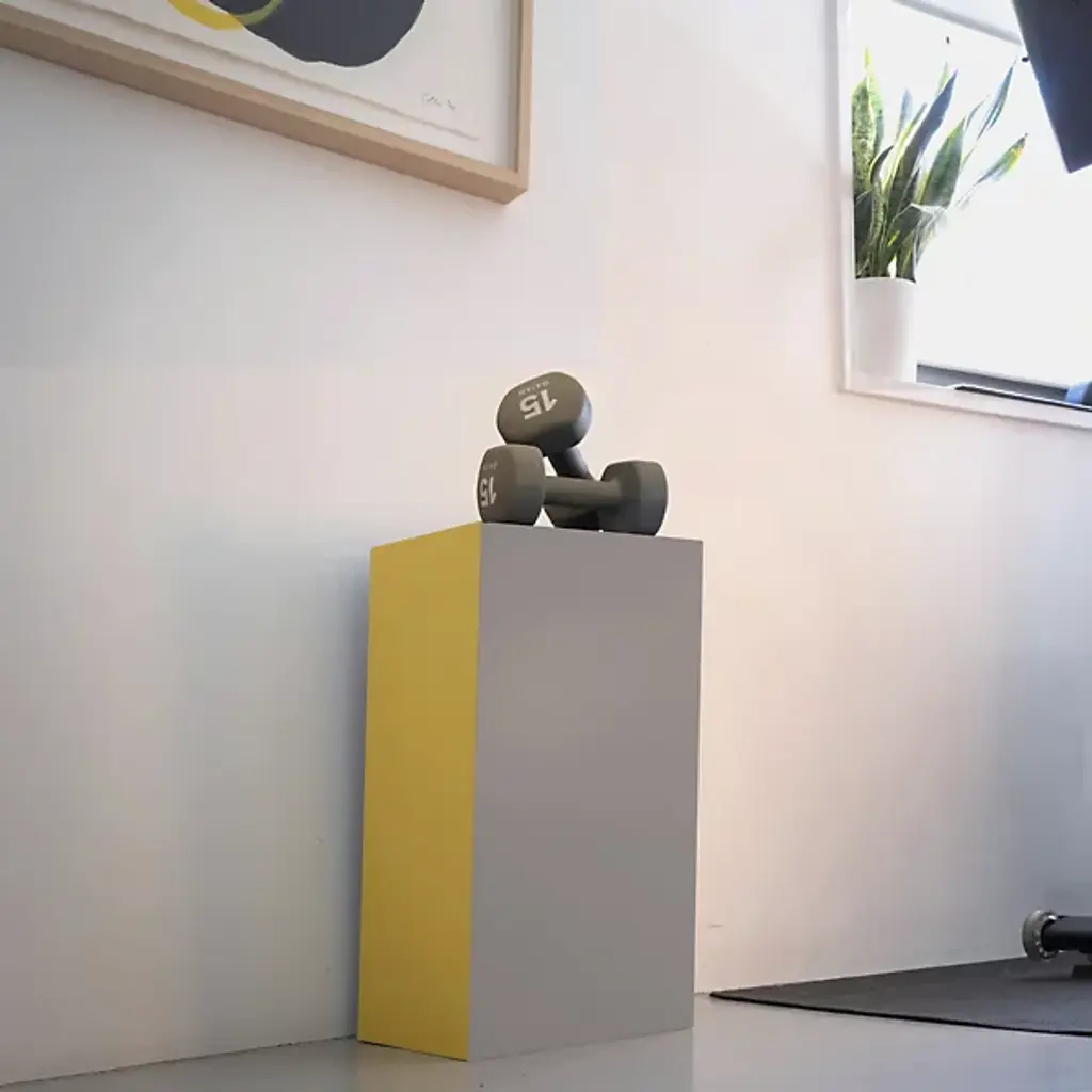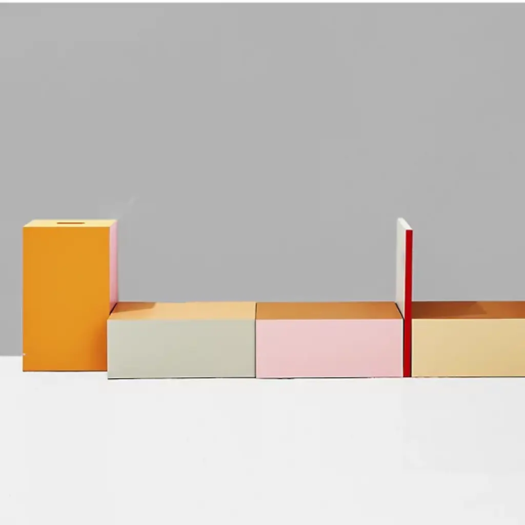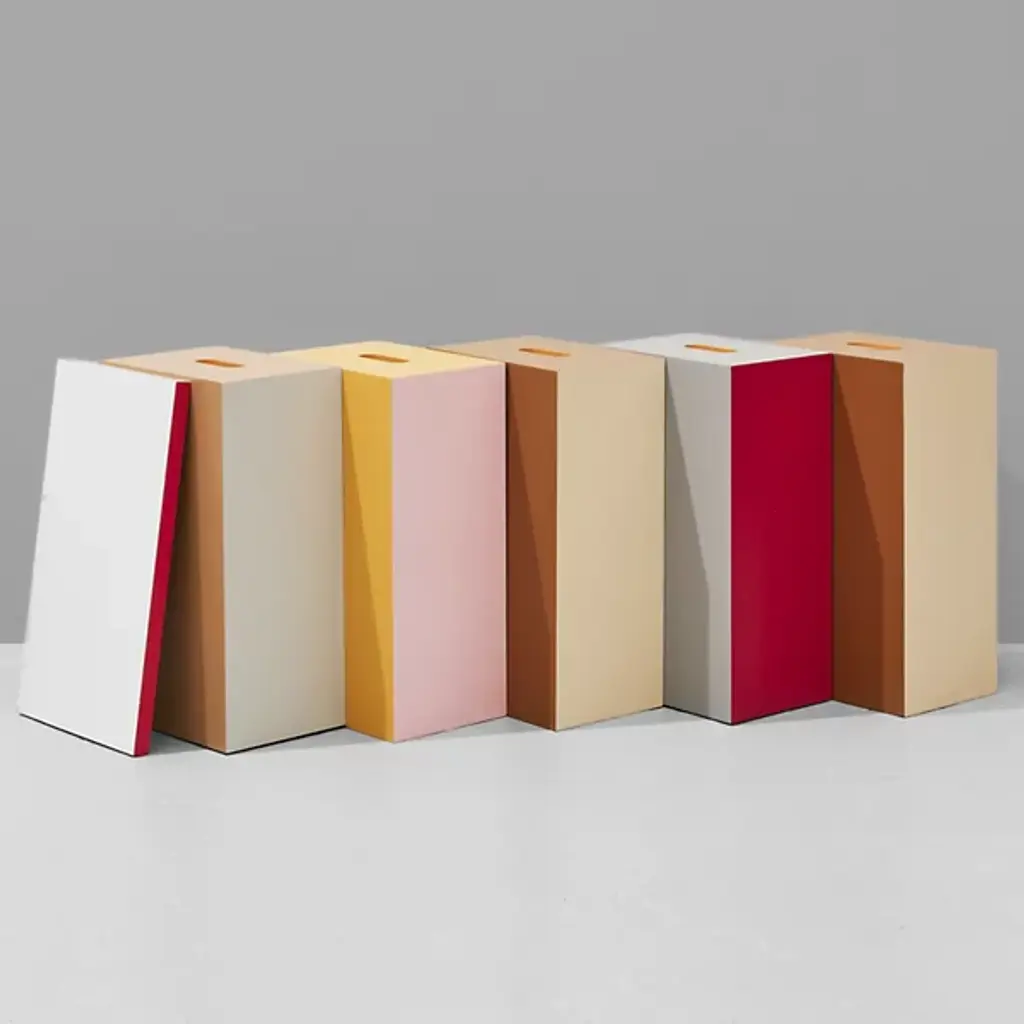 The Apple Box from Ilan lets you bring Hollywood home. Ilan Rubin designed it as a tribute to the original Apple Box, a key movie tool used to reshape any set and raise even the shortest actors to commanding heights. Made from sustainably harvested Baltic Birch plywood, this rectangular wonder can, like its Tinseltown counterpart, work as a shelf, stepstool, seat, table, or footrest. Each side panel is realized in rich color, adding an impactful accent to the straightforward form, while a single cutaway handle on a narrow end enables a secure grip and easy movement.