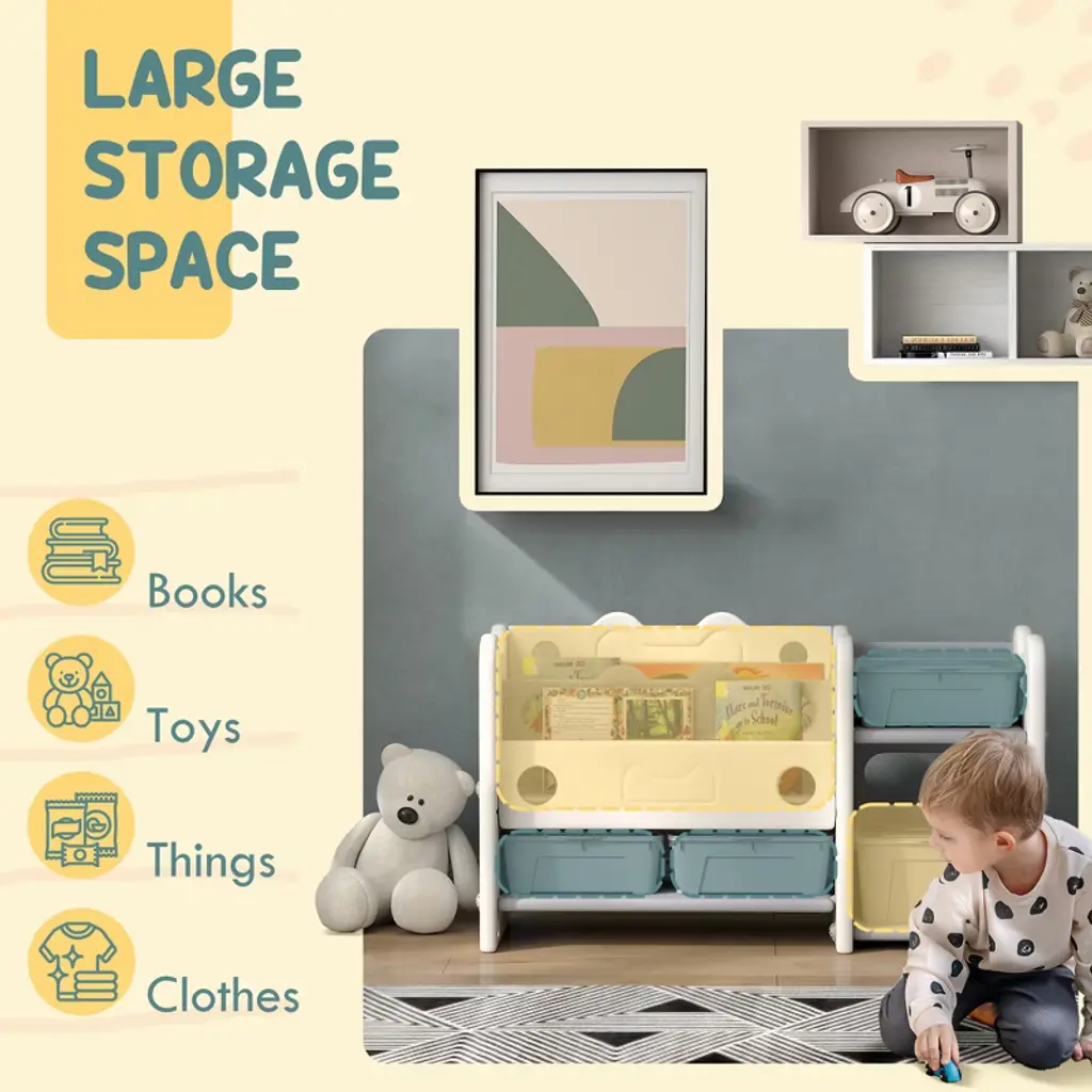 Aprilsoul Kids Toy Storage, 2 Tier Toy Organizer With 4 Storage Boxes & Bookshelves