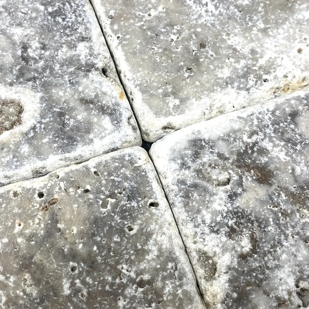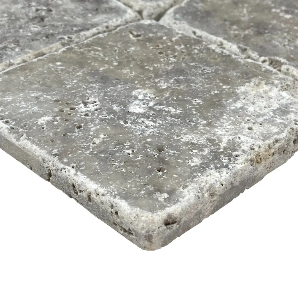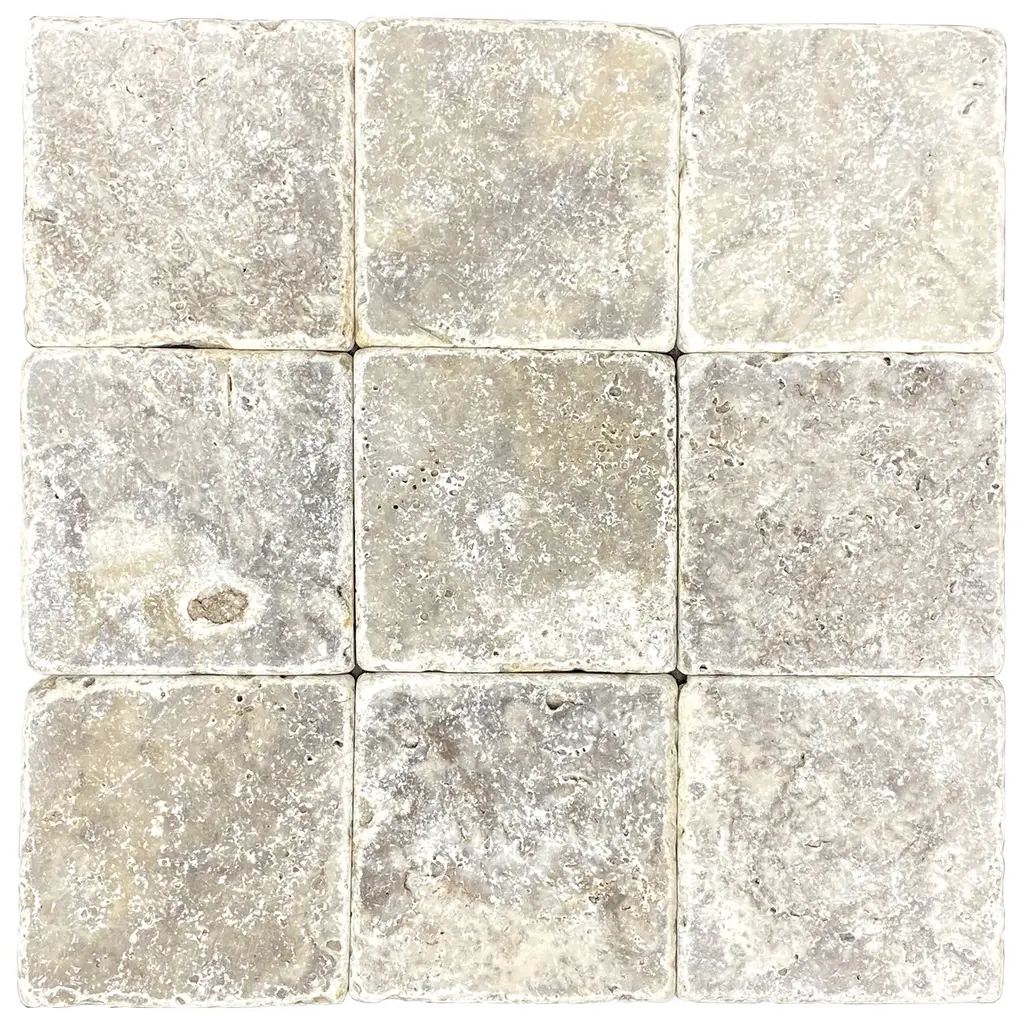 Argento Travertine 4" X 4" Tumbled Tile - 1 Box (5.56 Sqft) - Silver
