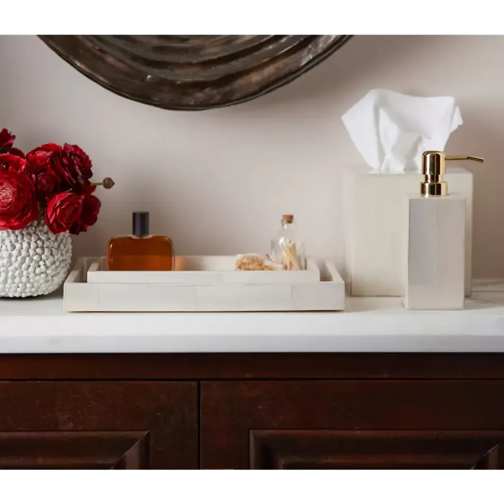 Nothing says sleek like polished faux horn! Give a modern bath an earthy tone with our gorgeously refined Arles. Shades of charcoal, gray, and brown soften the black collection’s sharp aesthetic; hues of natural cream and ivory give the neutral collection swoon-worthy depth. The designers at Pigeon & Poodle believe the details of a home are just as important as the furniture. A gorgeous toothbrush holder or handcrafted canister can elevate an entire bath, the perfect frame can heighten the feel of a whole space, and a good-looking storage basket can be your look’s missing link. With thoughtful design and top-notch craftsmanship, Pigeon & Poodle create home accessories with the care and attention typically reserved for larger pieces of décor.