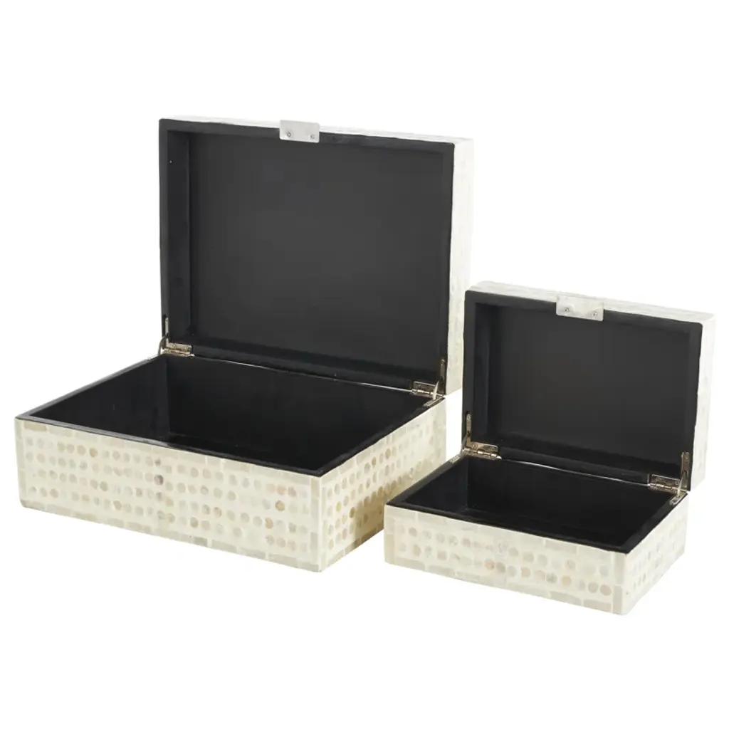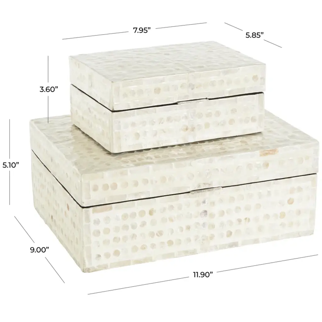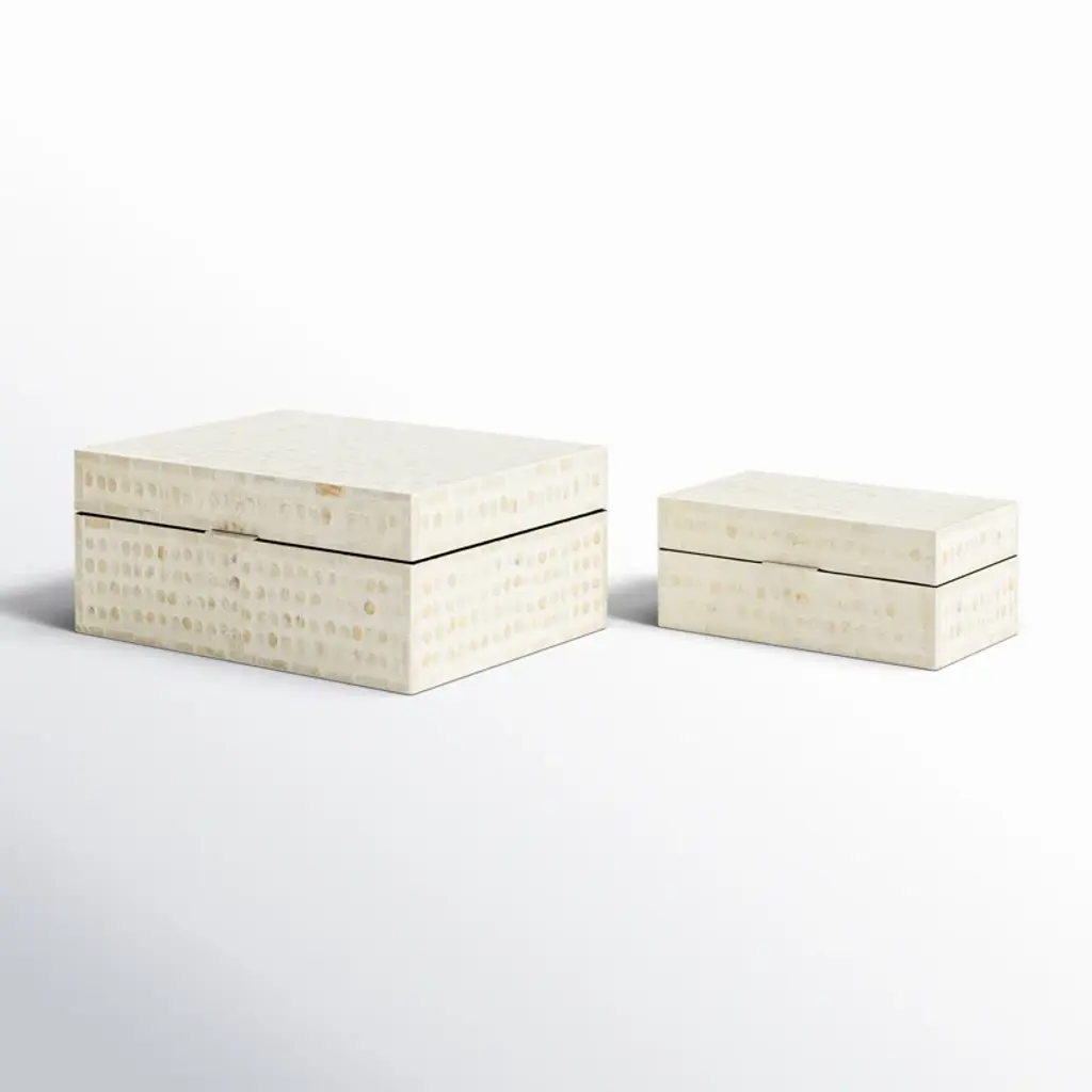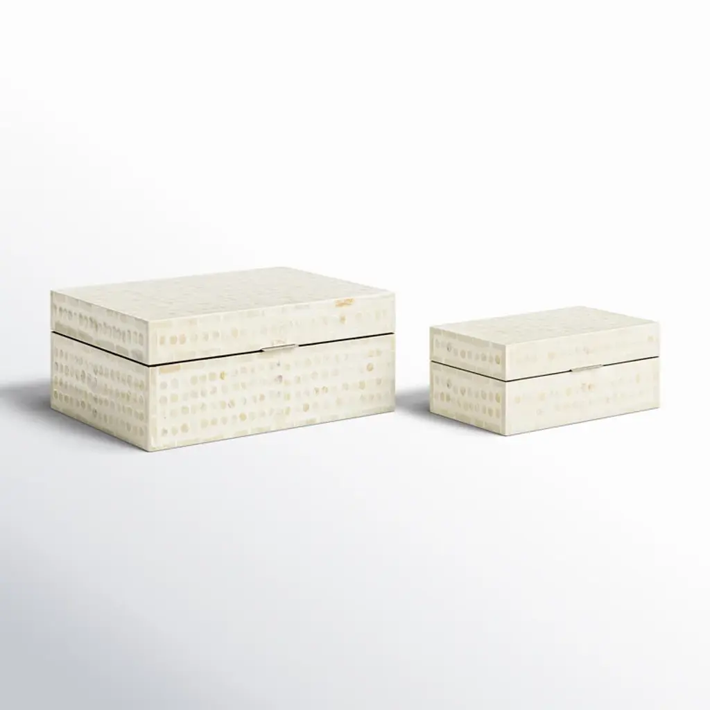 Armadi Mother Of Pearl Shell Handmade Mosaic Dot Storage Geometric Decorative Cream Box With Accents Set